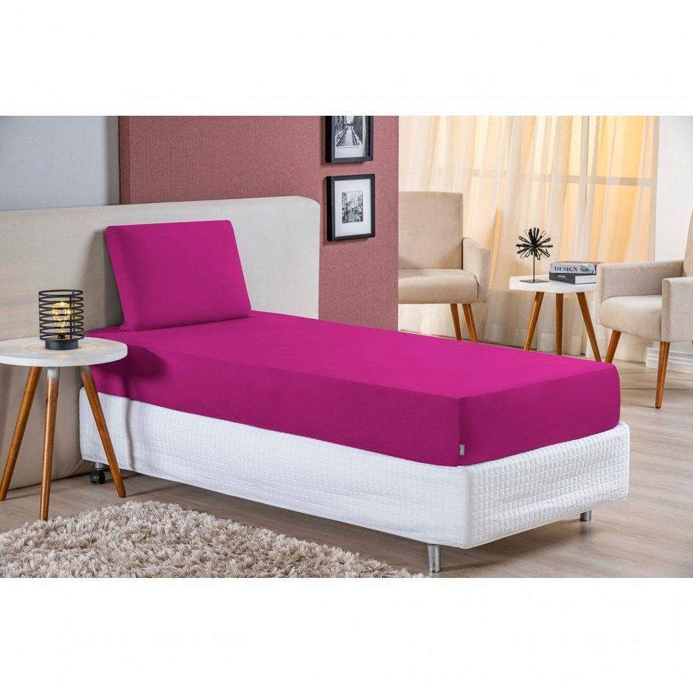 Jogo De Cama Solteiro Nobre 2 Peças Lençol Com Elástico De 30cm De Altura Malha 100% Algodão - Pink