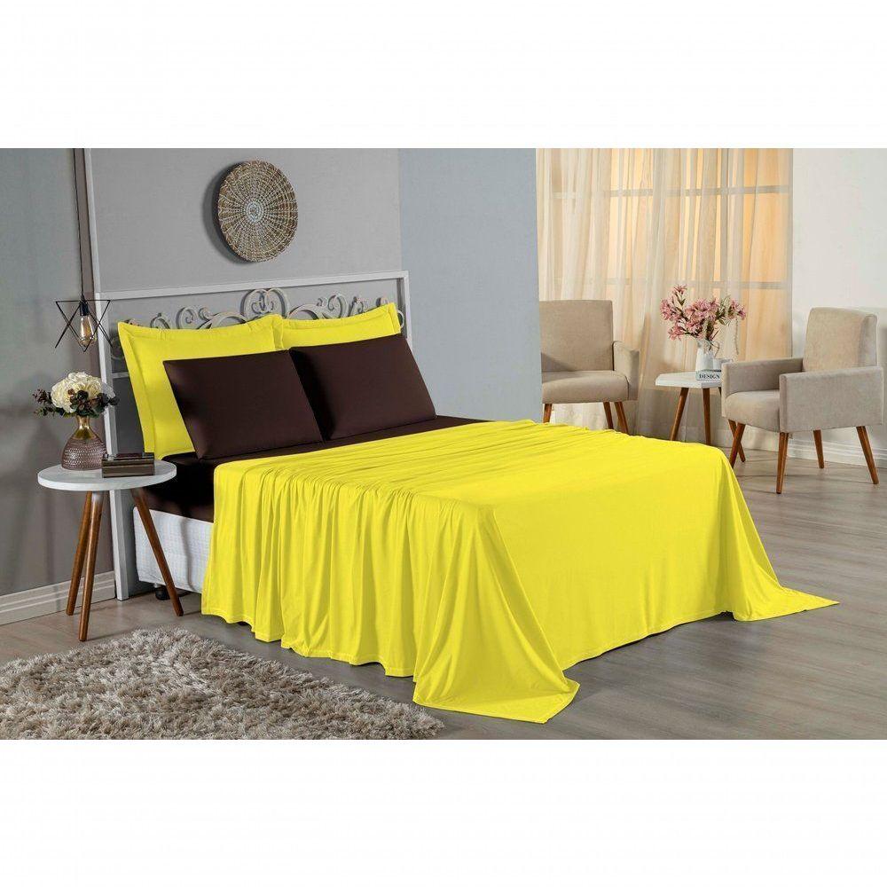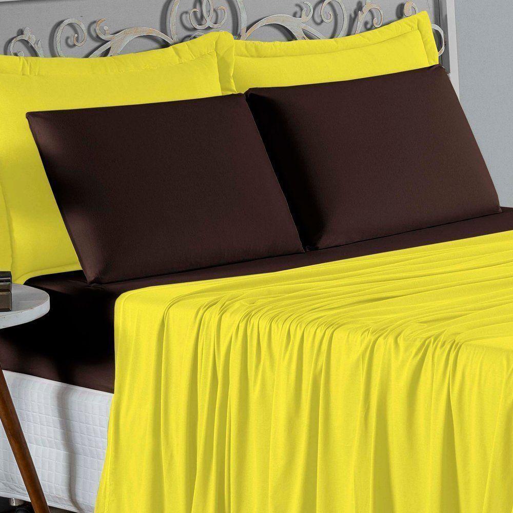 Jogo De Cama Solteiro Nobre 3 Peças Lençol Com Elástico De 30cm De Altura Malha 100% Algodão - Amarelo / Marrom