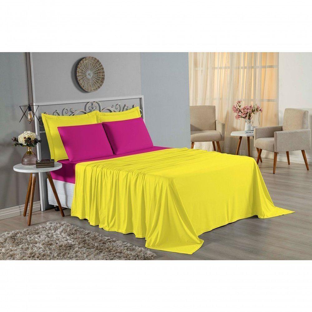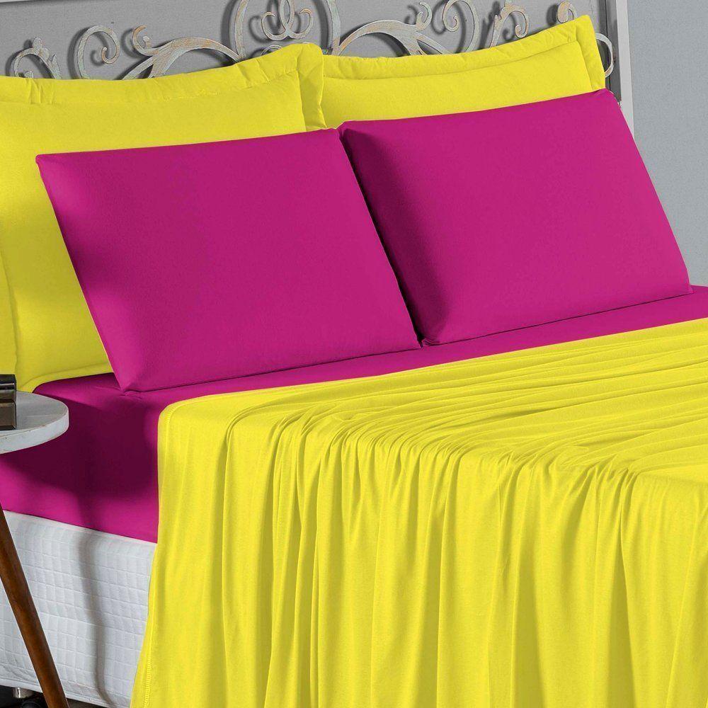 Jogo De Cama Solteiro Nobre 3 Peças Lençol Com Elástico De 30cm De Altura Malha 100% Algodão - Amarelo / Pink