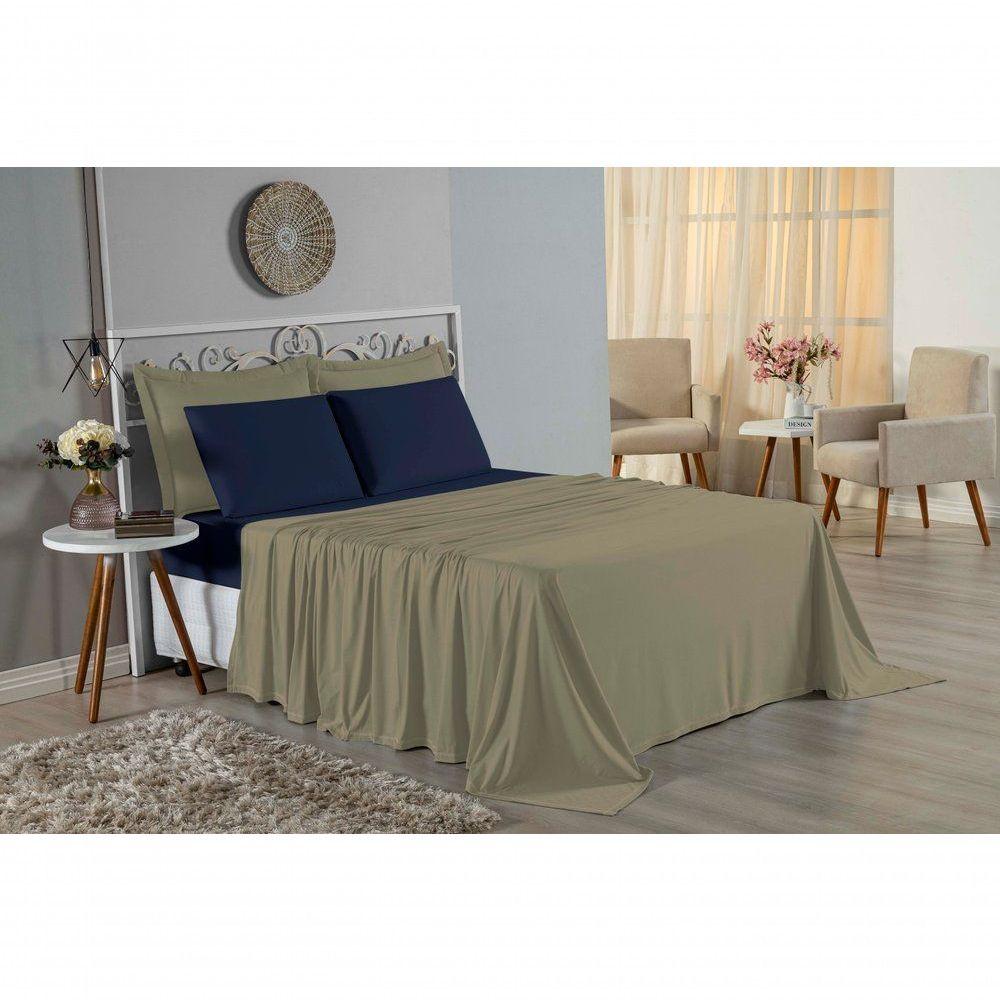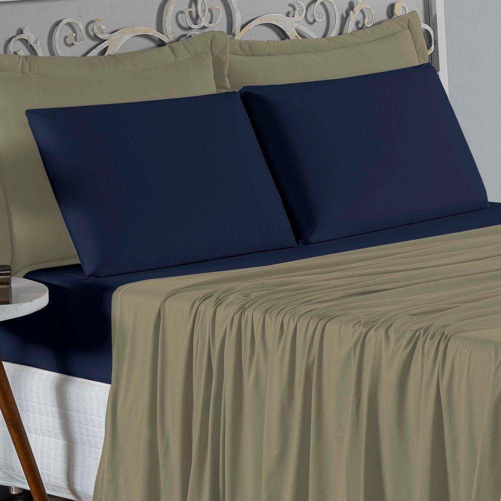 Jogo De Cama Solteiro Nobre 3 Peças Lençol Com Elástico De 30cm De Altura Malha 100% Algodão - Avelã / Azul-marinhoTenha o conforto completo com o Jogo de Cama Solteiro Nobre 3 Peças. A solução ideal para vestir sua cama com a qualidade superior e o frescor do puro algodão.Por que este Jogo de Cama é a escolha perfeita?- Enxoval Completo: Diferente dos modelos básicos, este jogo inclui o lençol de cima, perfeito para cobrir-se em dias frescos e proteger o edredom, além de decorar a cama.- 100% Algodão: O tecido de fibra natural garante respirabilidade, evitando a sensação de calor excessivo e proporcionando um toque macio.- Ajuste Seguro: O lençol de baixo possui elástico, adaptando-se perfeitamente a colchões de até 30cm de altura.- Durabilidade Nobre: Peças resistentes que mantêm a estrutura e a maciez lavagem após lavagem.Produto composto por (Total 03 Peças):01 Lençol de Cima (Virol): 1,60m x 2,40m01 Lençol de Baixo com Elástico: 1,88m x 88cm x 30cm01 Fronha: 70cm x 50cmComposição:Tecido: Malha 100% Algodão - Fio 30/1 Penteado
