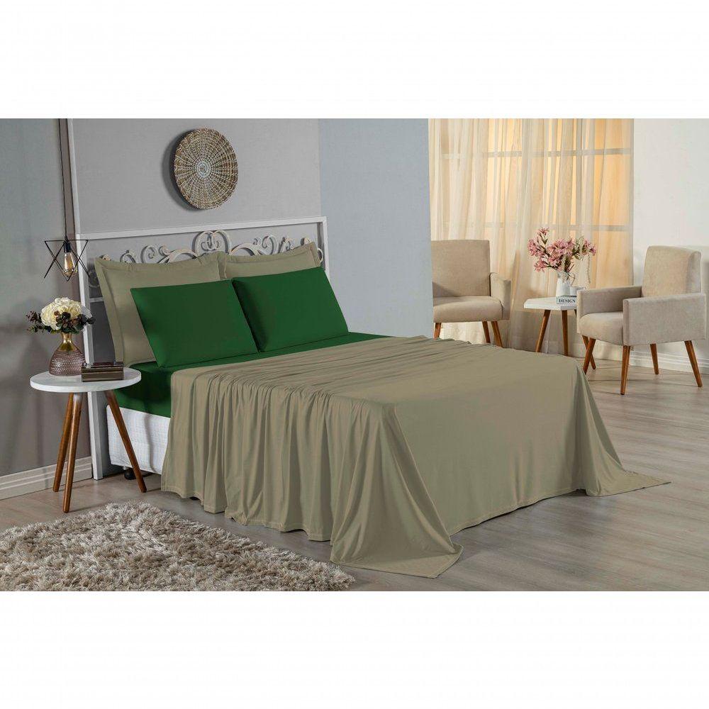 Jogo De Cama Solteiro Nobre 3 Peças Lençol Com Elástico De 30cm De Altura Malha 100% Algodão - Avelã / Verde-bandeira