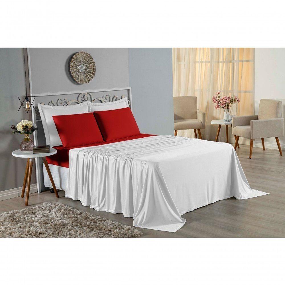 Jogo De Cama Solteiro Nobre 3 Peças Lençol Com Elástico De 30cm De Altura Malha 100% Algodão - Branco / Vermelho