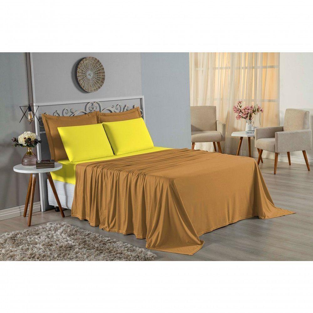 Jogo De Cama Solteiro Nobre 3 Peças Lençol Com Elástico De 30cm De Altura Malha 100% Algodão - Cobre / Amarelo