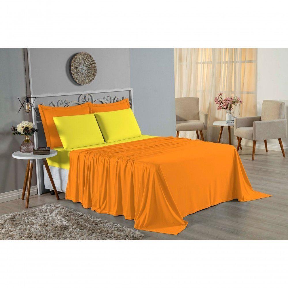 Jogo De Cama Solteiro Nobre 3 Peças Lençol Com Elástico De 30cm De Altura Malha 100% Algodão - Laranja / Amarelo