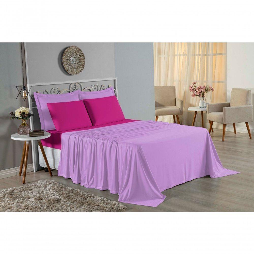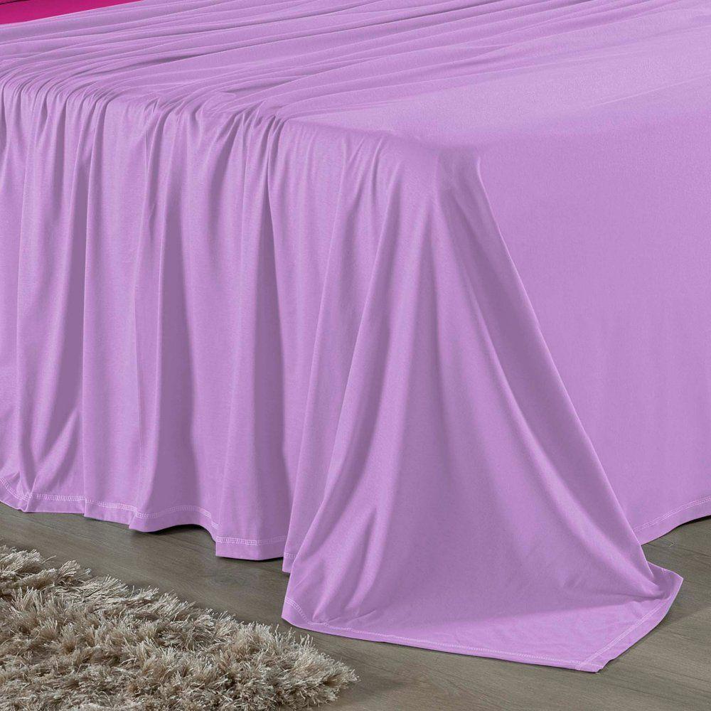 Jogo De Cama Solteiro Nobre 3 Peças Lençol Com Elástico De 30cm De Altura Malha 100% Algodão - Lilás / Pink
