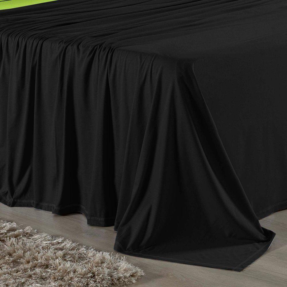 Jogo De Cama Solteiro Nobre 3 Peças Lençol Com Elástico De 30cm De Altura Malha 100% Algodão - Preto / Pistache