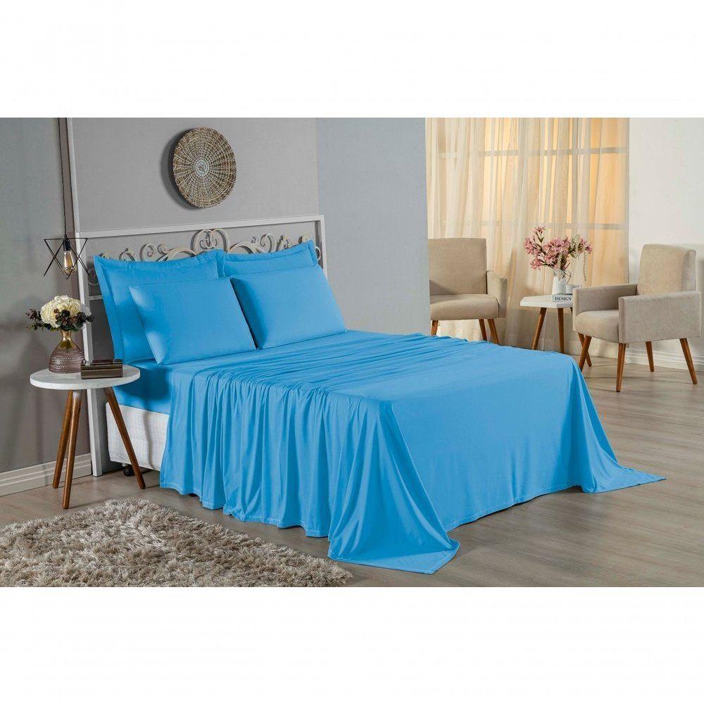 Jogo De Cama Solteiro Nobre 3 Peças Lençol Com Elástico De 30cm De Altura Malha 100% Algodão - Turquesa
