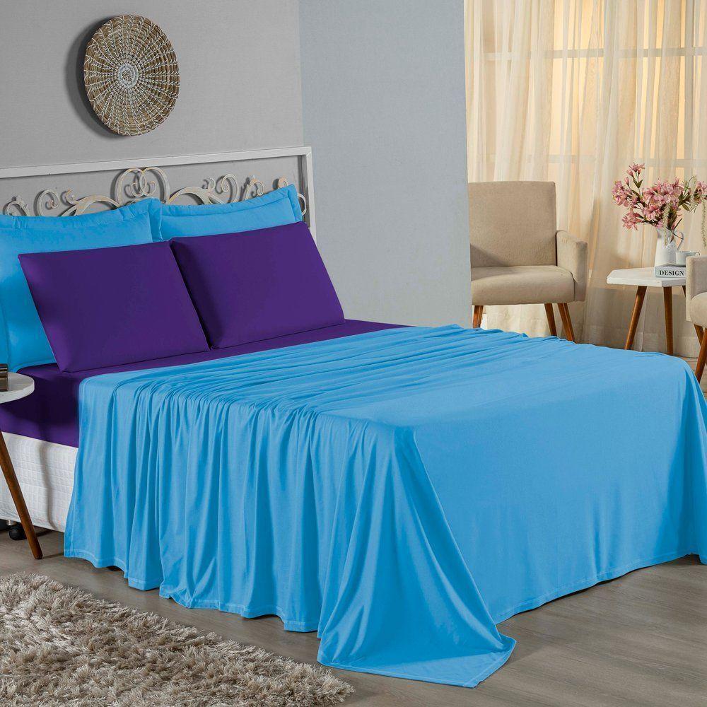 Jogo De Cama Solteiro Nobre 3 Peças Lençol Com Elástico De 30cm De Altura Malha 100% Algodão - Turquesa / RoxoTenha o conforto completo com o Jogo de Cama Solteiro Nobre 3 Peças. A solução ideal para vestir sua cama com a qualidade superior e o frescor do puro algodão.Por que este Jogo de Cama é a escolha perfeita?- Enxoval Completo: Diferente dos modelos básicos, este jogo inclui o lençol de cima, perfeito para cobrir-se em dias frescos e proteger o edredom, além de decorar a cama.- 100% Algodão: O tecido de fibra natural garante respirabilidade, evitando a sensação de calor excessivo e proporcionando um toque macio.- Ajuste Seguro: O lençol de baixo possui elástico, adaptando-se perfeitamente a colchões de até 30cm de altura.- Durabilidade Nobre: Peças resistentes que mantêm a estrutura e a maciez lavagem após lavagem.Produto composto por (Total 03 Peças):01 Lençol de Cima (Virol): 1,60m x 2,40m01 Lençol de Baixo com Elástico: 1,88m x 88cm x 30cm01 Fronha: 70cm x 50cmComposição:Tecido: Malha 100% Algodão - Fio 30/1 Penteado