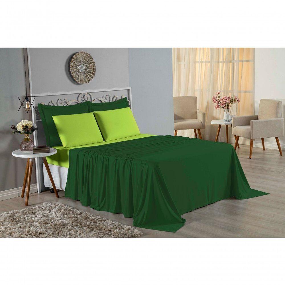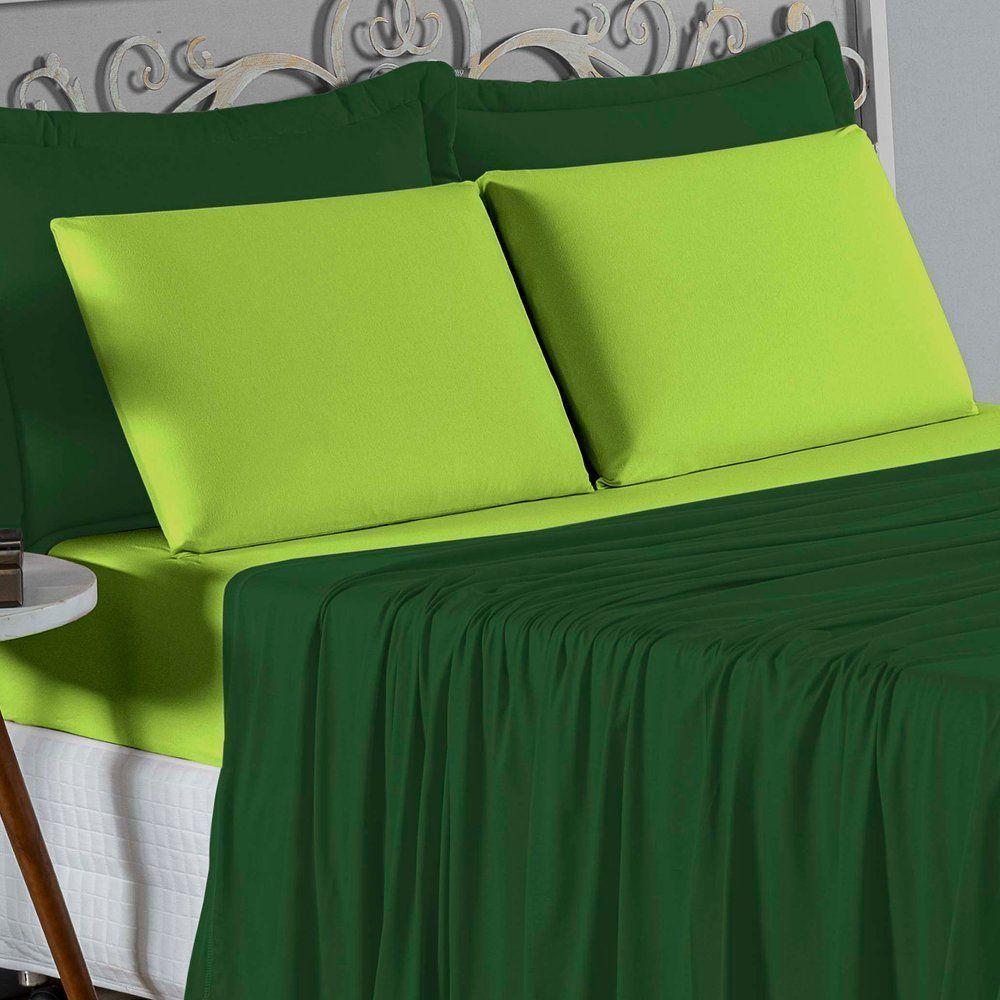 Jogo De Cama Solteiro Nobre 3 Peças Lençol Com Elástico De 30cm De Altura Malha 100% Algodão - Verde-bandeira / Pistache