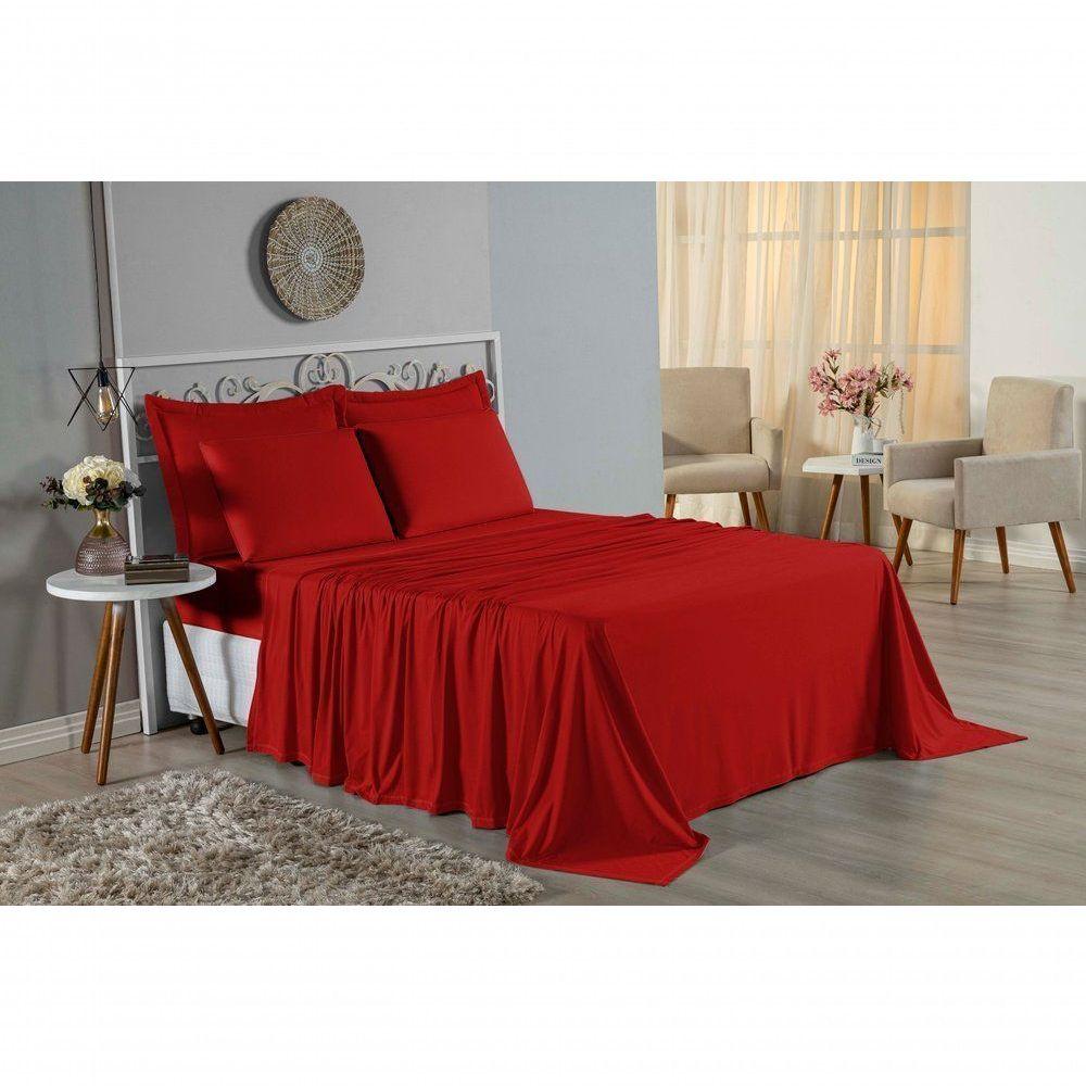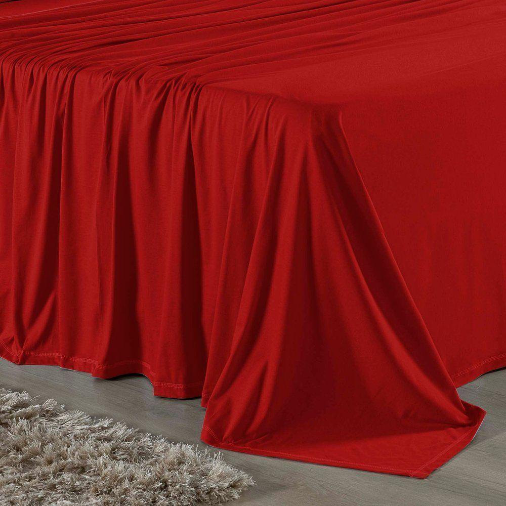 Jogo De Cama Solteiro Nobre 3 Peças Lençol Com Elástico De 30cm De Altura Malha 100% Algodão - Vermelho