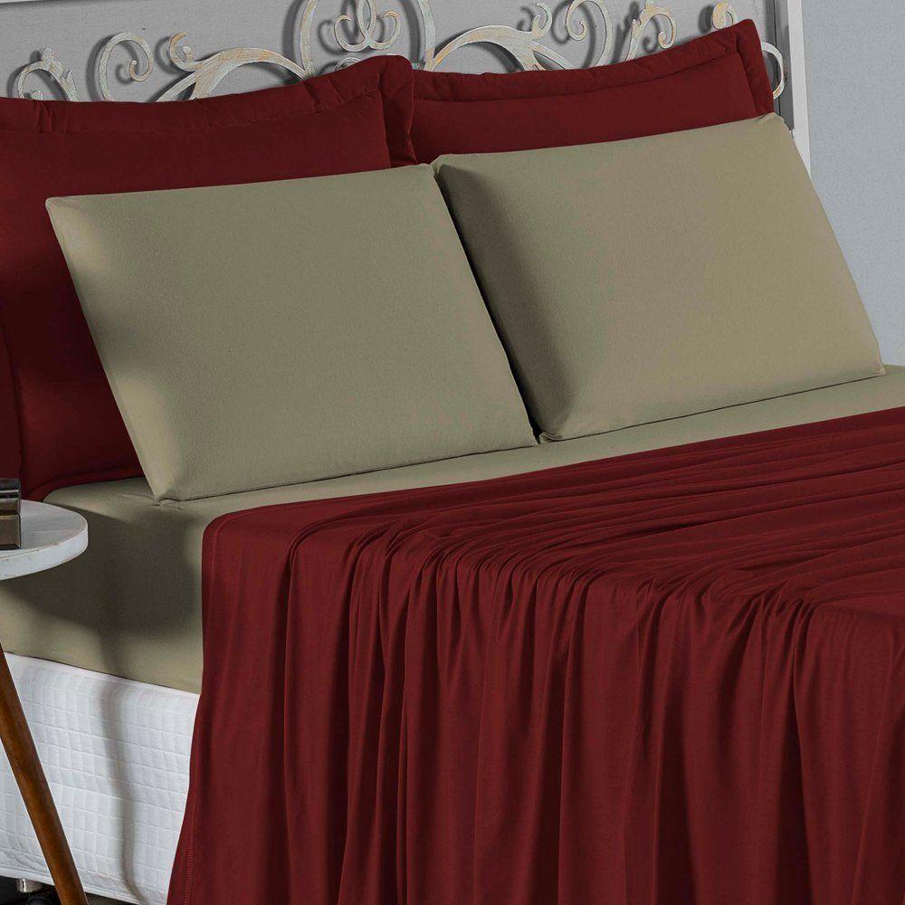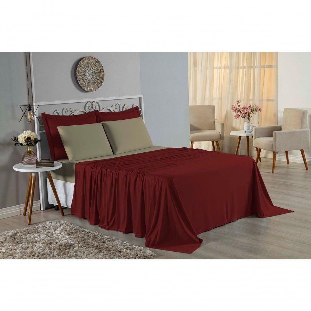 Jogo De Cama Solteiro Nobre 3 Peças Lençol Com Elástico De 30cm De Altura Malha 100% Algodão - Vinho / Avelã