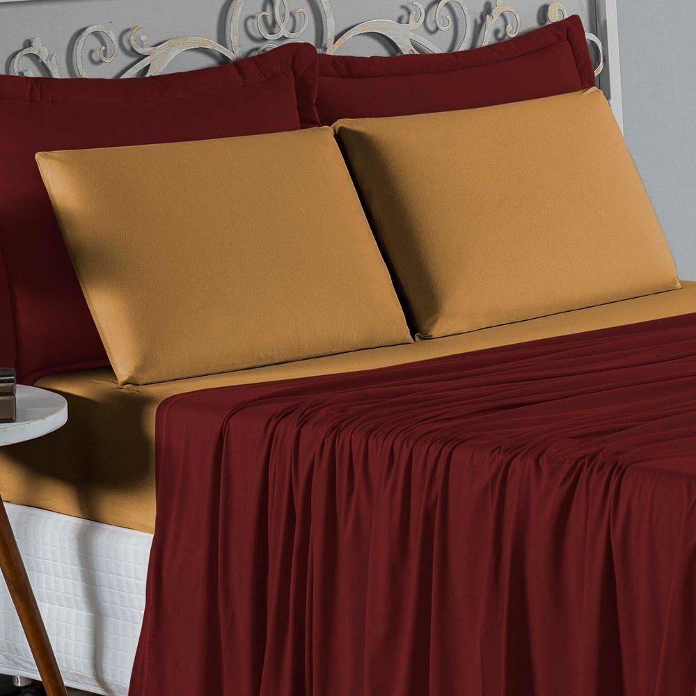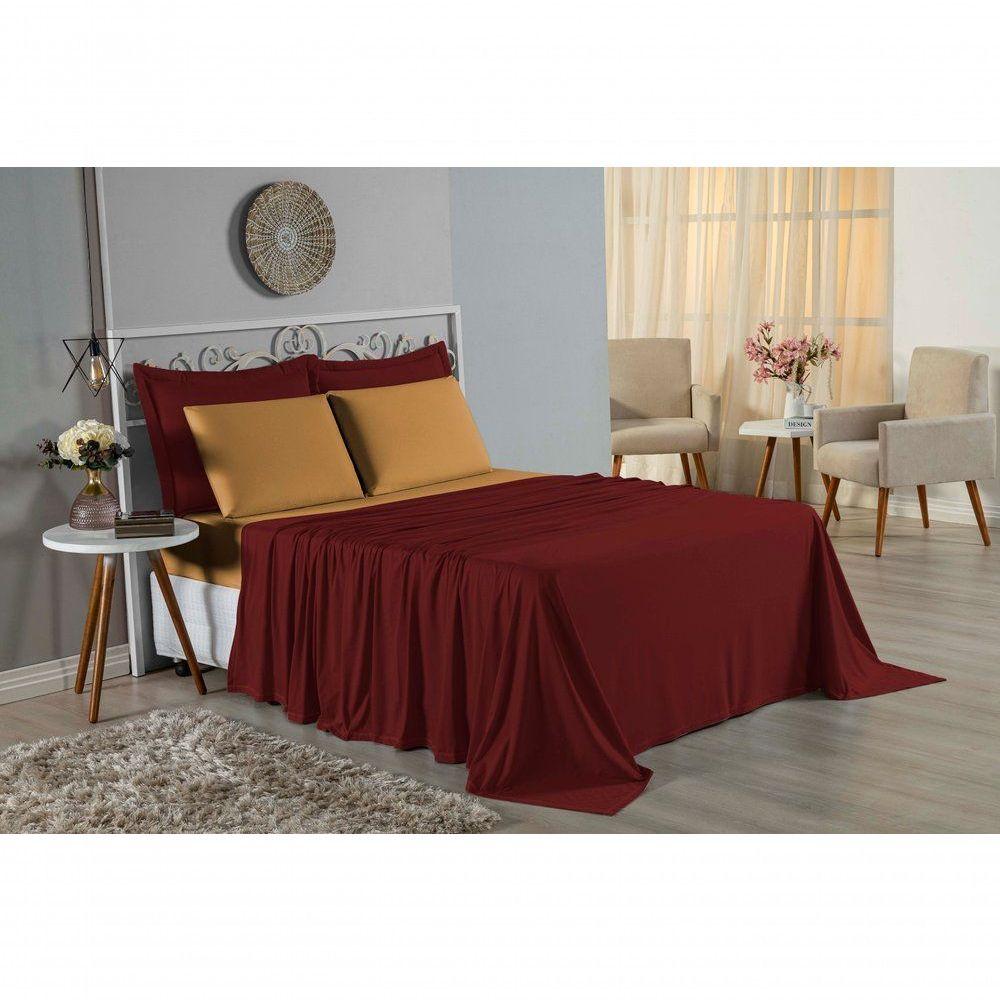 Jogo De Cama Solteiro Nobre 3 Peças Lençol Com Elástico De 30cm De Altura Malha 100% Algodão - Vinho / Cobre