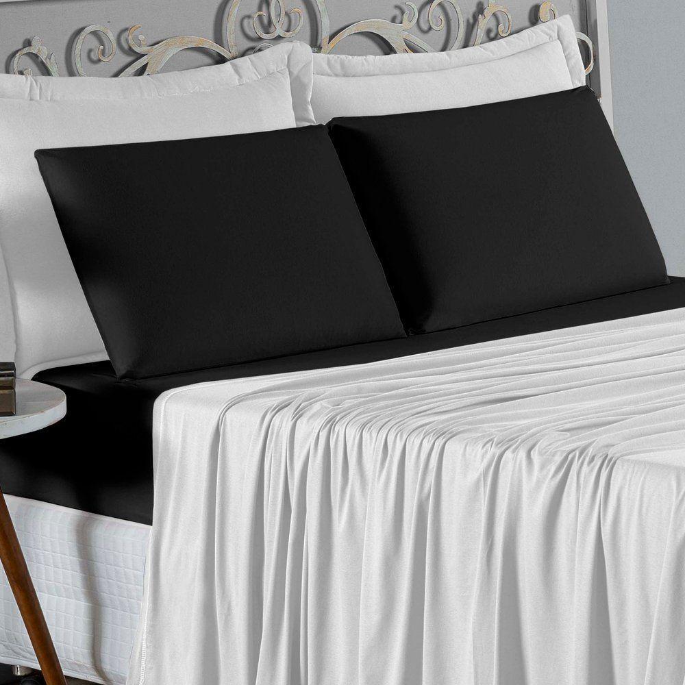 Jogo De Cama Solteiro Nobre 3 Peças Lençol Com Elástico De 30cm De Altura Malha 100% Algodão - Branco / Preto