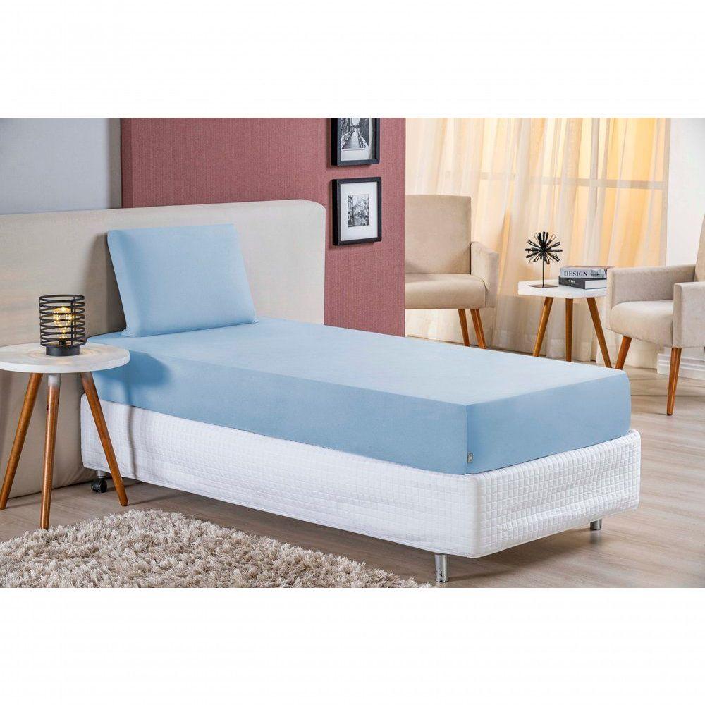 Jogo De Cama Solteiro Nobre 2 Peças Lençol Com Elástico De 30cm De Altura Malha 100% Algodão - Azul-bebê