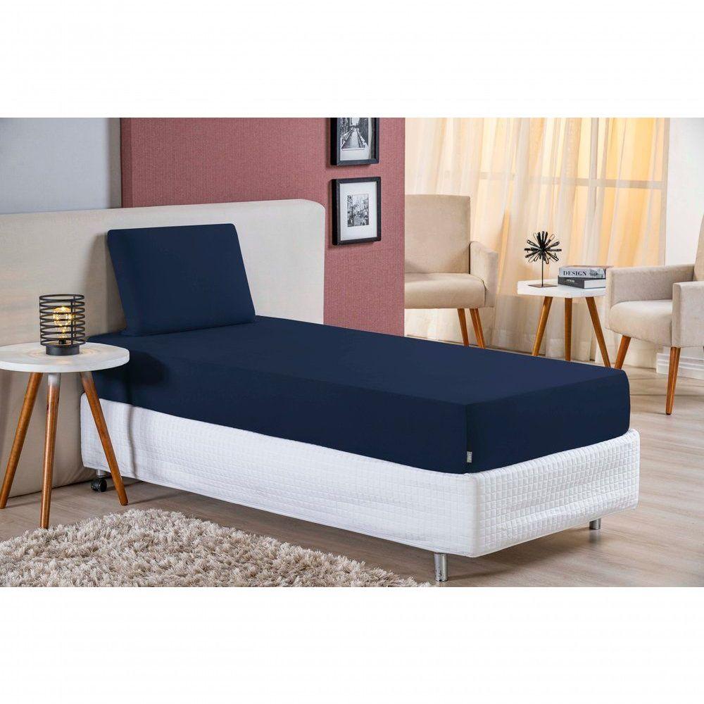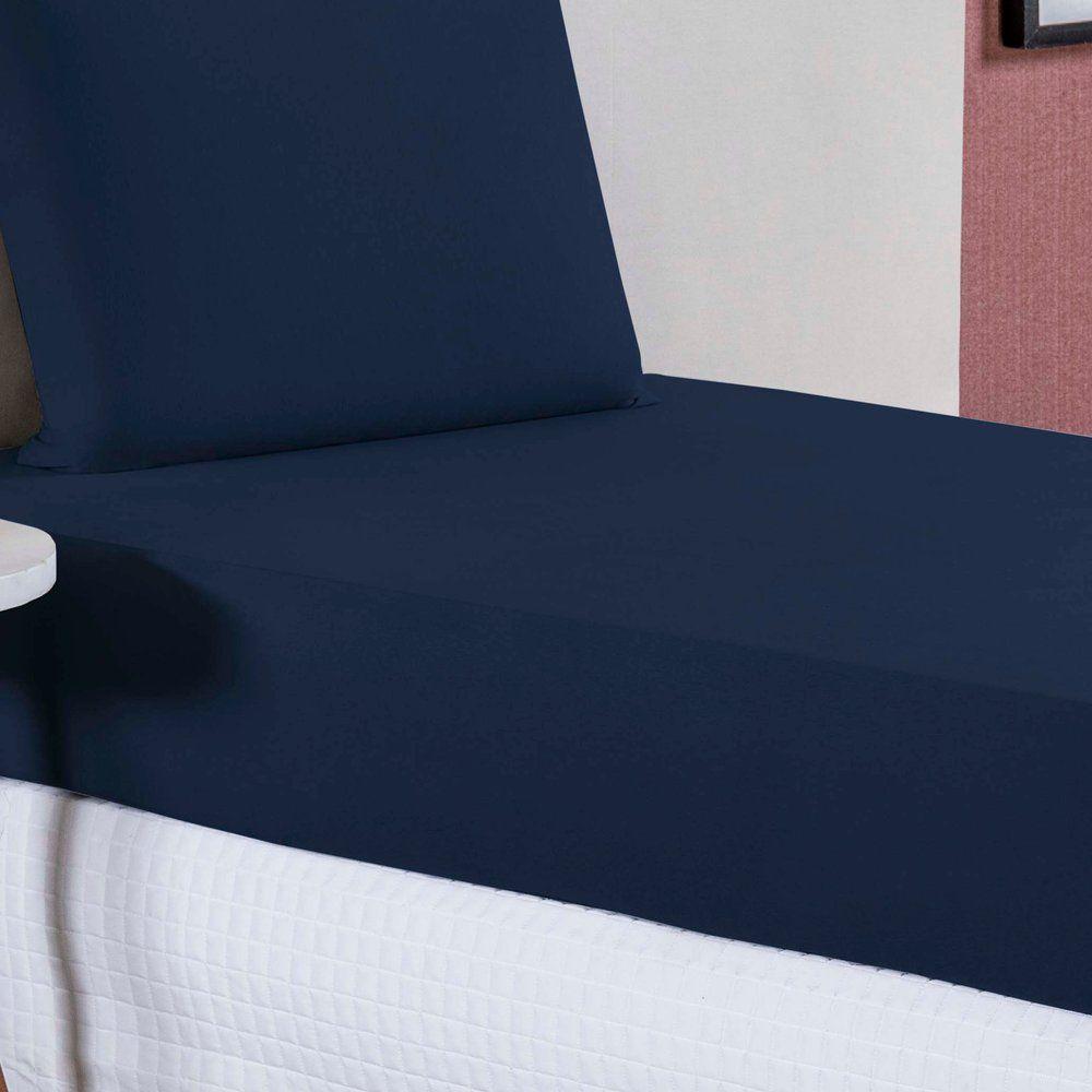 Jogo De Cama Solteiro Nobre 2 Peças Lençol Com Elástico De 30cm De Altura Malha 100% Algodão - Azul-marinho