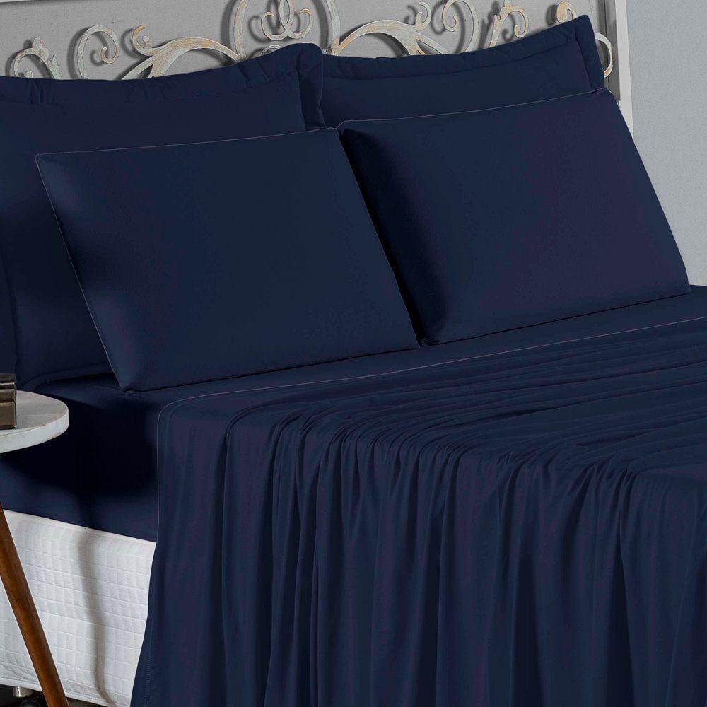 Jogo De Cama Solteiro Nobre 3 Peças Lençol Com Elástico De 30cm De Altura Malha 100% Algodão - Azul-marinho