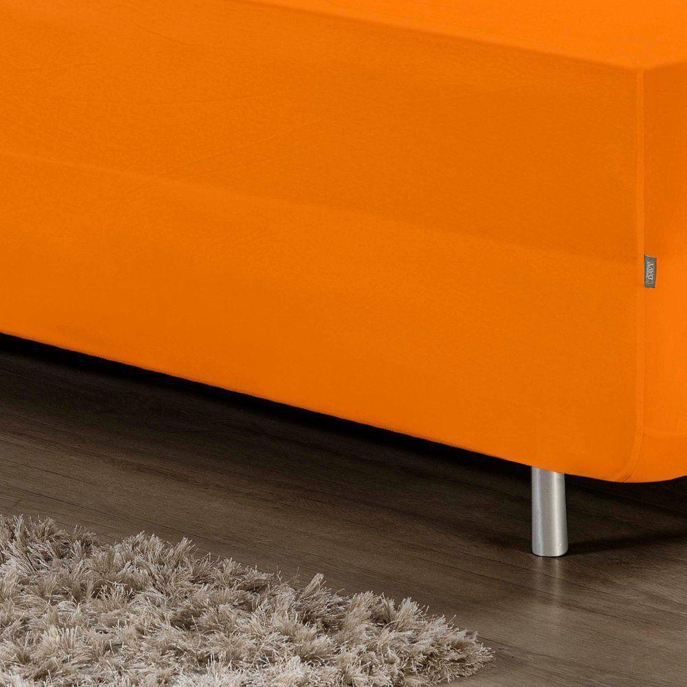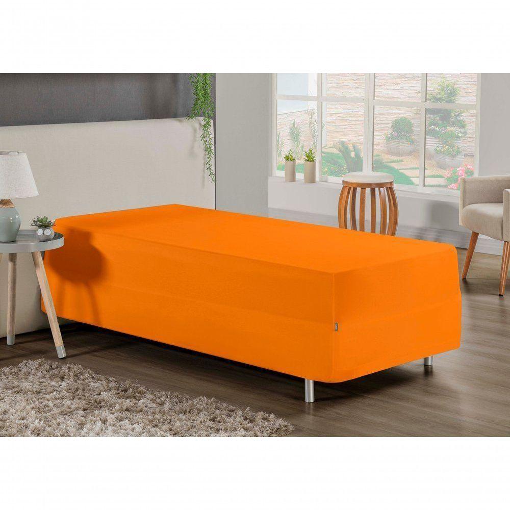 Jogo De Cama Solteiro Nobre 2 Peças Luva De Box 55cm De Altura Malha 100% Algodão - Laranja