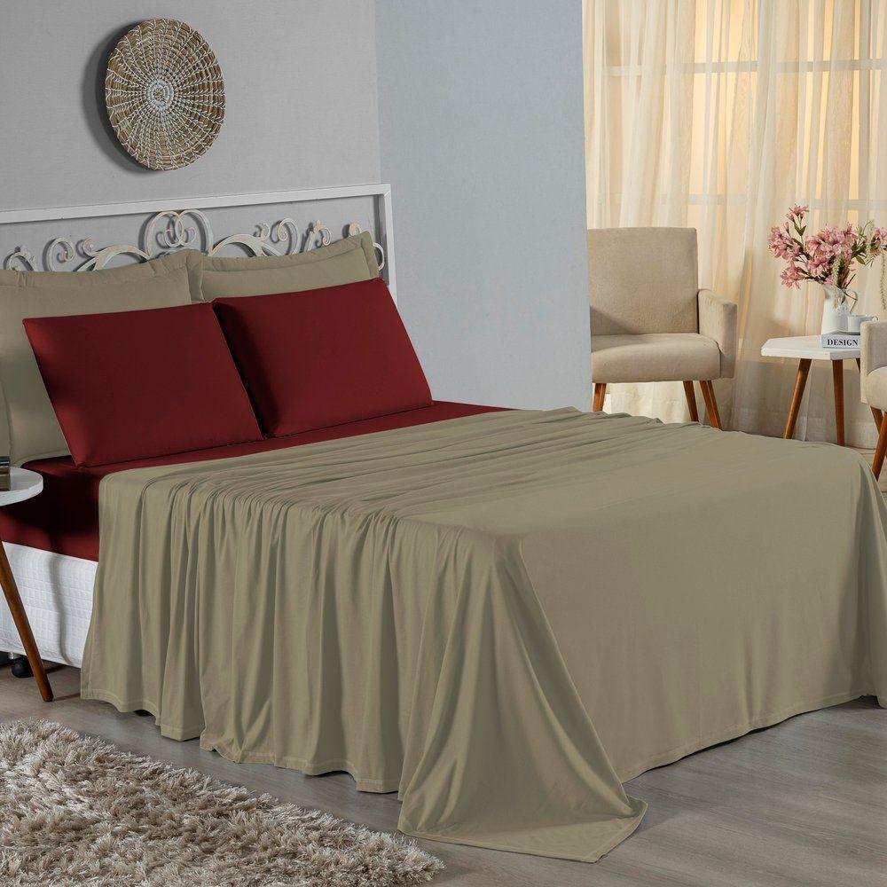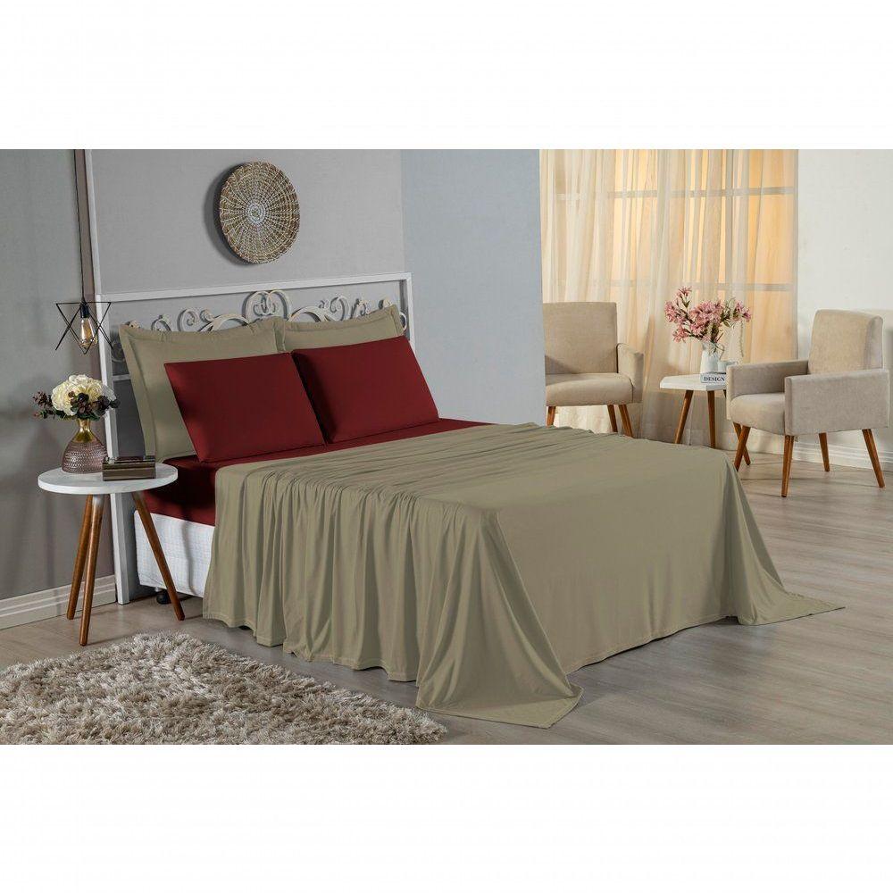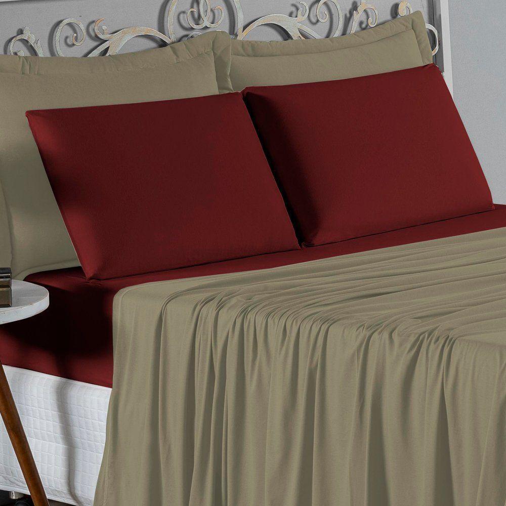 Jogo De Cama Solteiro Nobre 3 Peças Lençol Com Elástico De 30cm De Altura Malha 100% Algodão - Avelã / Vinho