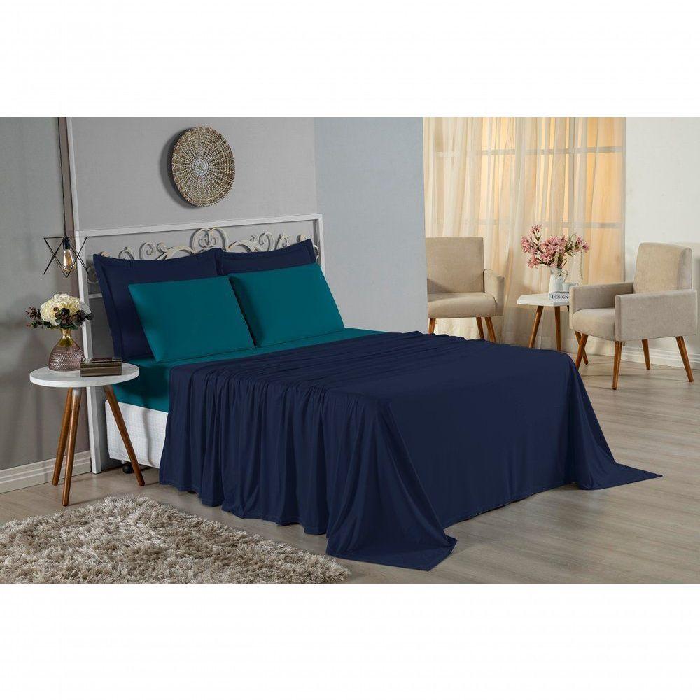 Jogo De Cama Solteiro Nobre 3 Peças Lençol Com Elástico De 30cm De Altura Malha 100% Algodão - Azul-marinho / Petróleo