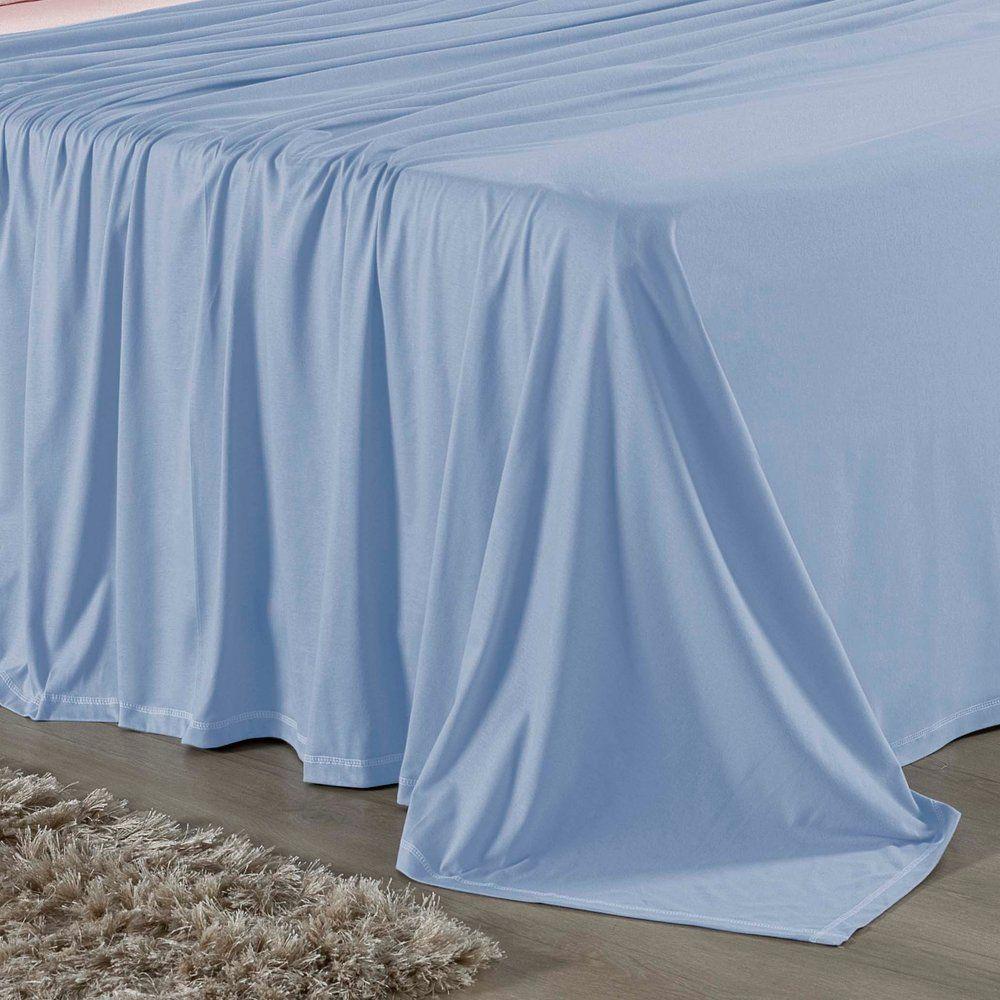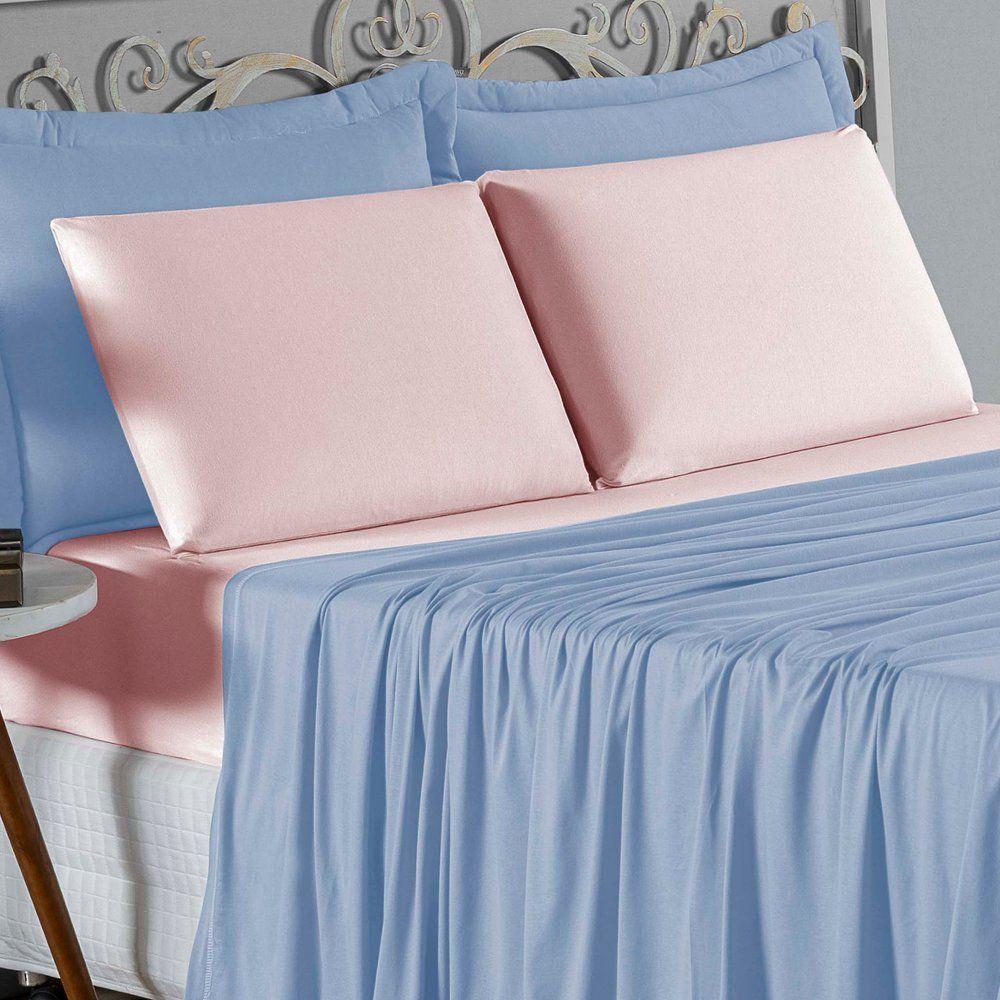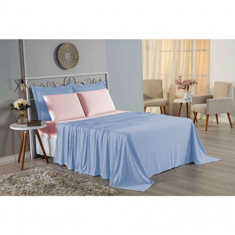 Jogo De Cama Solteiro Nobre 3 Peças Lençol Com Elástico De 30cm De Altura Malha 100% Algodão - Azul-bebê / Rosa