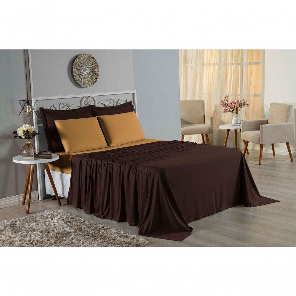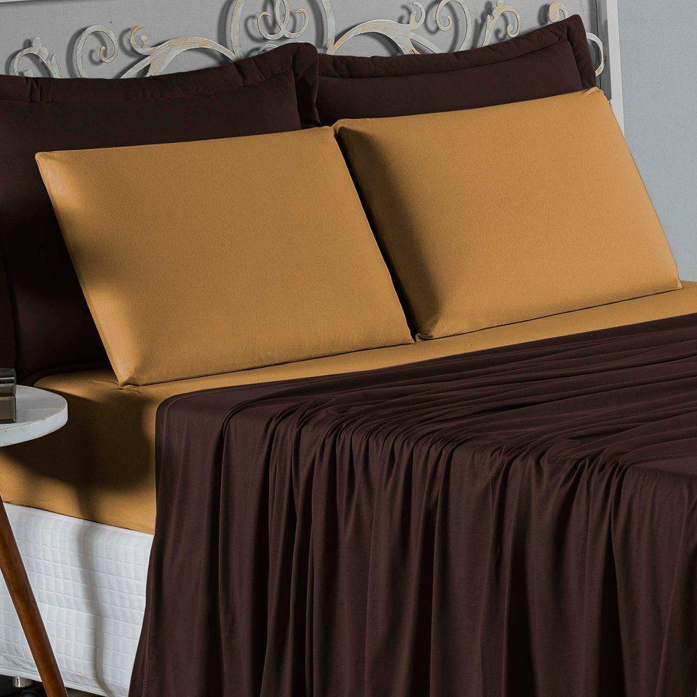 Jogo De Cama Solteiro Nobre 3 Peças Lençol Com Elástico De 30cm De Altura Malha 100% Algodão - Marrom / Cobre