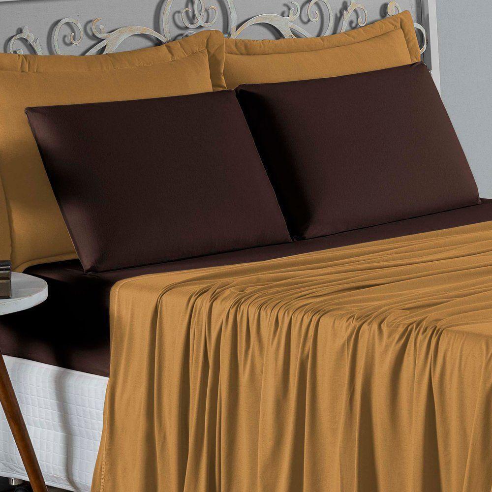 Jogo De Cama Solteiro Nobre 3 Peças Lençol Com Elástico De 30cm De Altura Malha 100% Algodão - Cobre / Marrom