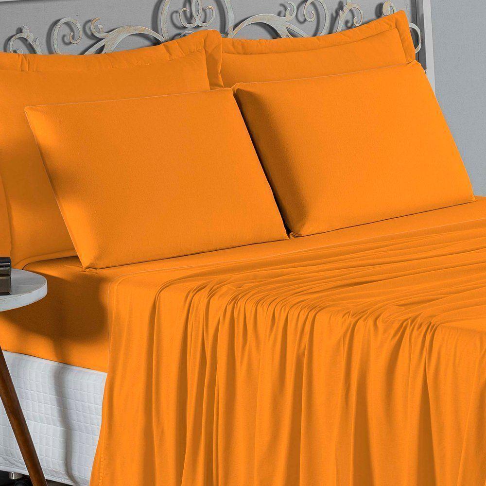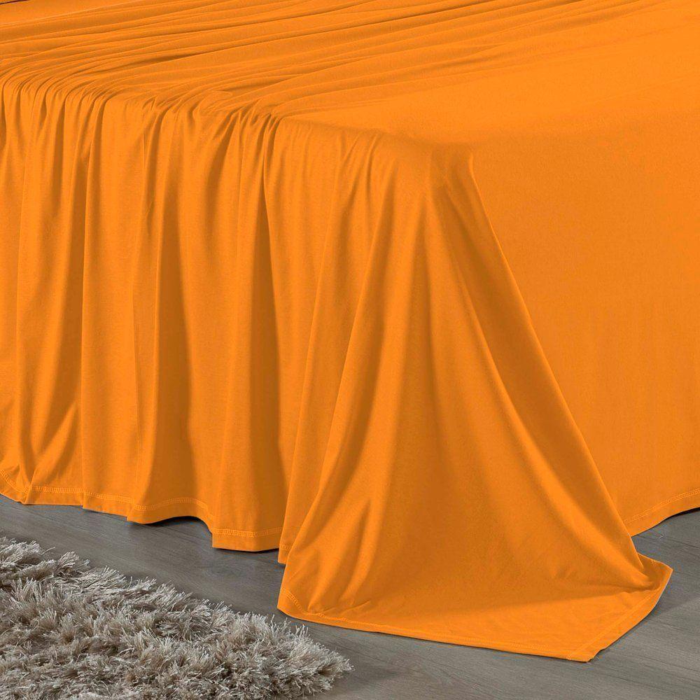 Jogo De Cama Solteiro Nobre 3 Peças Lençol Com Elástico De 30cm De Altura Malha 100% Algodão - Laranja