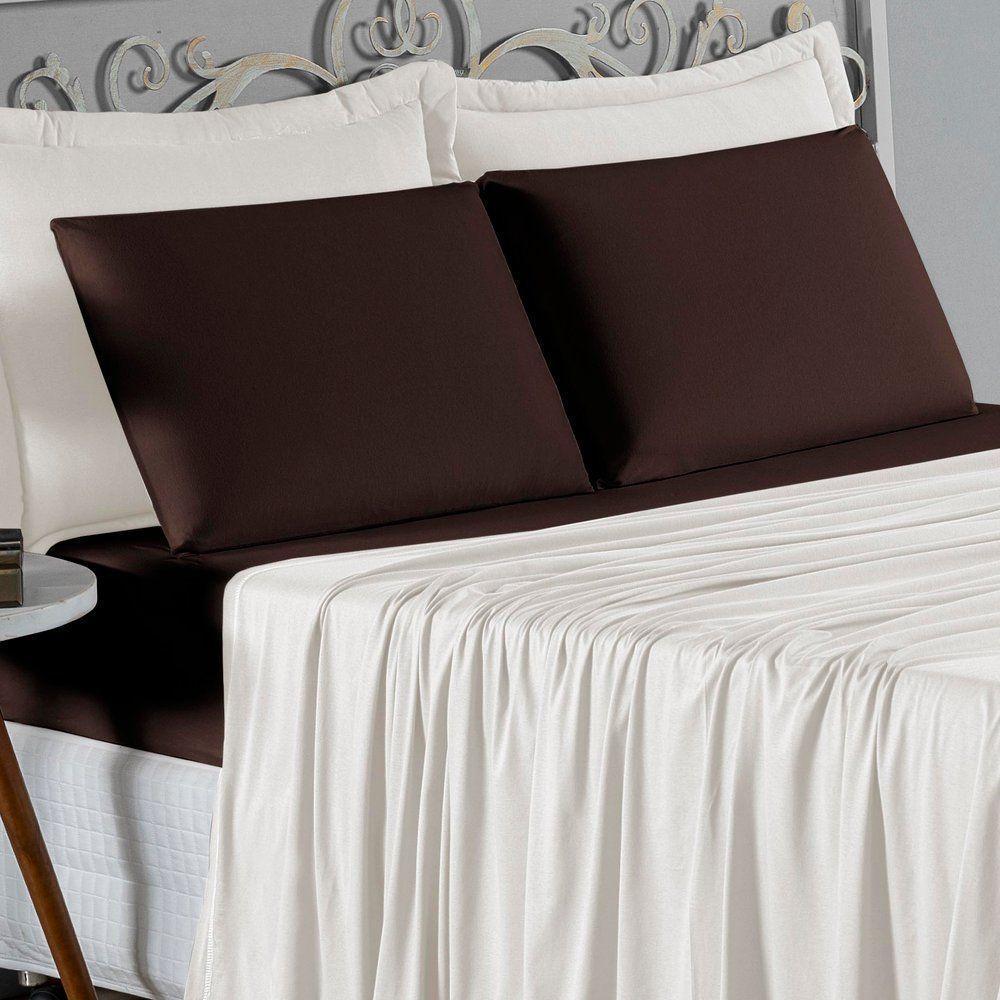 Jogo De Cama Solteiro Nobre 3 Peças Lençol Com Elástico De 30cm De Altura Malha 100% Algodão - Palha / Marrom