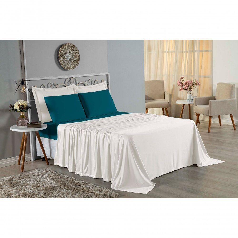 Jogo De Cama Solteiro Nobre 3 Peças Lençol Com Elástico De 30cm De Altura Malha 100% Algodão - Palha / PetróleoTenha o conforto completo com o Jogo de Cama Solteiro Nobre 3 Peças. A solução ideal para vestir sua cama com a qualidade superior e o frescor do puro algodão.Por que este Jogo de Cama é a escolha perfeita?- Enxoval Completo: Diferente dos modelos básicos, este jogo inclui o lençol de cima, perfeito para cobrir-se em dias frescos e proteger o edredom, além de decorar a cama.- 100% Algodão: O tecido de fibra natural garante respirabilidade, evitando a sensação de calor excessivo e proporcionando um toque macio.- Ajuste Seguro: O lençol de baixo possui elástico, adaptando-se perfeitamente a colchões de até 30cm de altura.- Durabilidade Nobre: Peças resistentes que mantêm a estrutura e a maciez lavagem após lavagem.Produto composto por (Total 03 Peças):01 Lençol de Cima (Virol): 1,60m x 2,40m01 Lençol de Baixo com Elástico: 1,88m x 88cm x 30cm01 Fronha: 70cm x 50cmComposição:Tecido: Malha 100% Algodão - Fio 30/1 Penteado