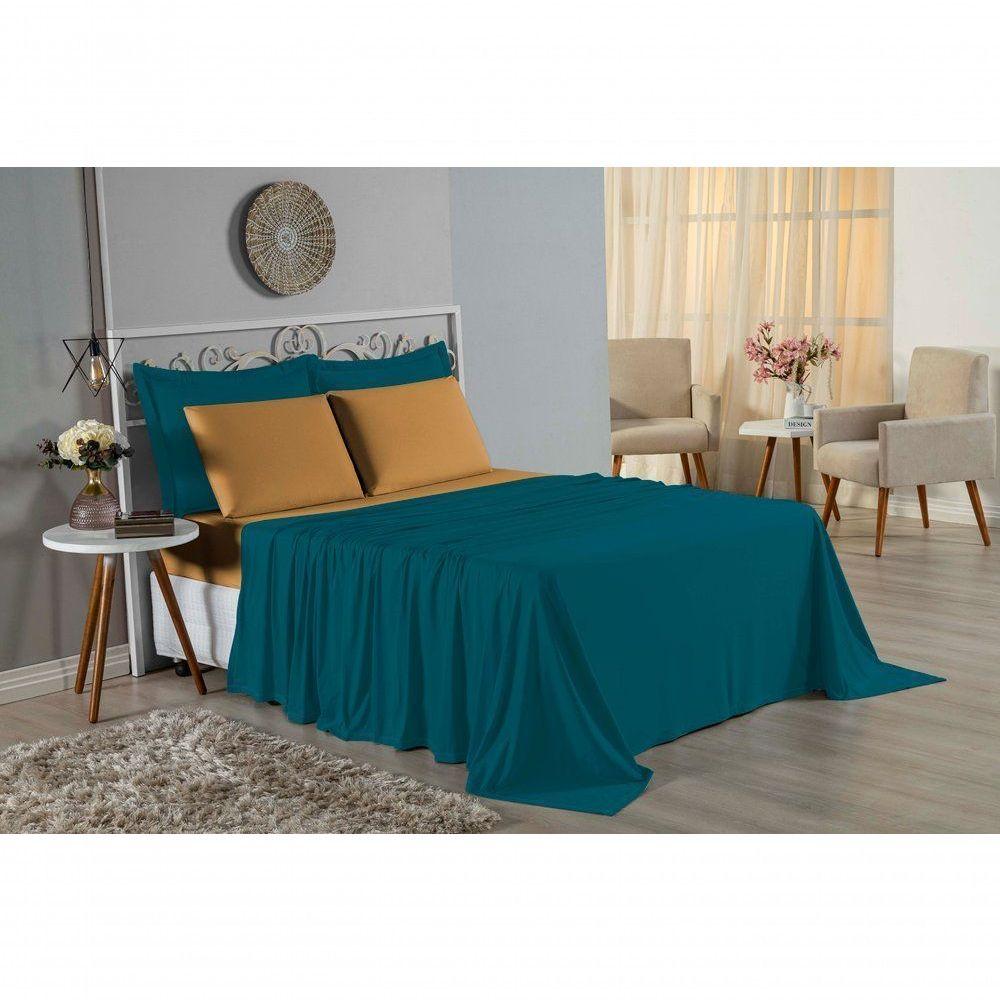 Jogo De Cama Solteiro Nobre 3 Peças Lençol Com Elástico De 30cm De Altura Malha 100% Algodão - Petróleo / Cobre
