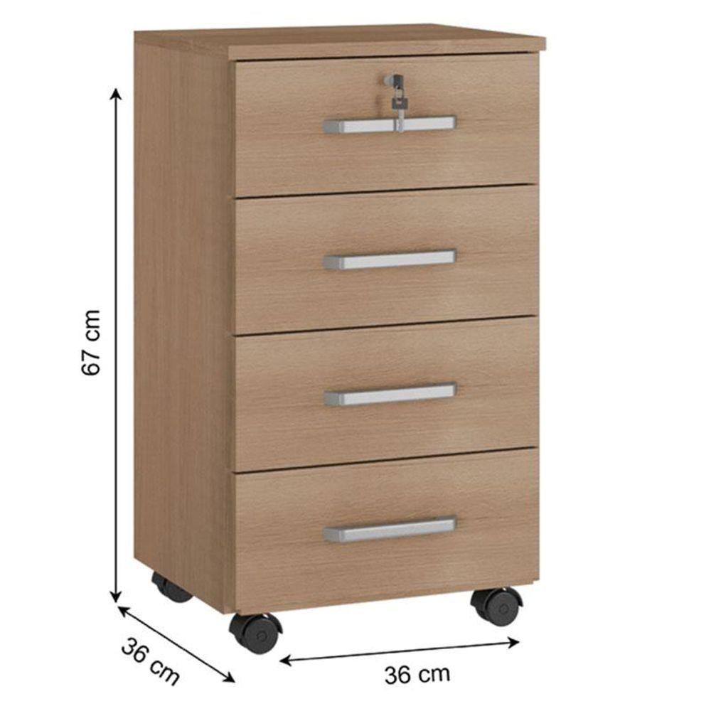 Kit 4 Gaveteiros Para Escritório Gávea Com Chave E 4 Livreiros Office Freijó Fosco - Móveis LeãoKit 4 Gaveteiros para Escritório Gávea com Chave e 4 Livreiros Office Freijó Fosco – Móveis LeãoUm escritório organizado é sinônimo de sucesso! Por isso, apresentamos esse lindo kit de 4 Gaveteiros Gávea e 4 Livreiros Office, ambos desenvolvidos pela Móveis Leão. São os itens perfeitos para complementar o ambiente, o gaveteiro possui chave na primeira gaveta para maior , livreiro com amplo espaço em suas prateleiras e também combinam perfeitamente com qualquer decoração devido ao design minimalista e moderno. A Móveis Leão possui um padrão de fabricaçãvo de alta qualidade, garantindo a durabilidade e resistência dos móveis por muito tempo. Confira mais detalhes e aproveite! Gaveteiro Gávea com Chave: - Material da estrutura em MDP - Acabamento em pintura - 4 Gavetas - Corrediças metálicas - Possui 4 rodízios - Possui puxador - Suporta peso máximo de 15 kg - Possui chave na primeira gaveta - Amplo espaço - Design moderno Dimensões: Altura: 67 cm Largura: 36 cm Profundidade: 36 cm Livreiro Office: - Material da estrutura em MDP - Acabamento em pintura - Prateleiras - Possui pés em PVC - Suporta peso máximo de 20 kg - Amplo espaço - Design moderno Dimensões: Altura: 188 cm Largura: 60,5 cm Profundidade: 34 cm - Objetos não acompanham o produto, somente para ilustração. - Não realizamos a montagem ou instalação do produto, porém acompanha manual de instruções. - Toda mercadoria segue segurada contra qualquer sinistro, em caso de anormalidade, recuse. - Conferir a quantidade de volumes. - As caixas ou pacotes possuem identificação com o nome, cidade e quantidades de volumes relativos à compra para conferência do recebedor.
