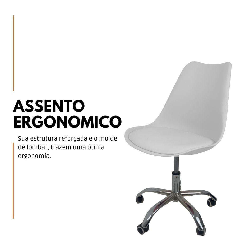 Kit 10 Cadeiras Office Base Cromada Com Rodizio Giratória Saarinen Branco