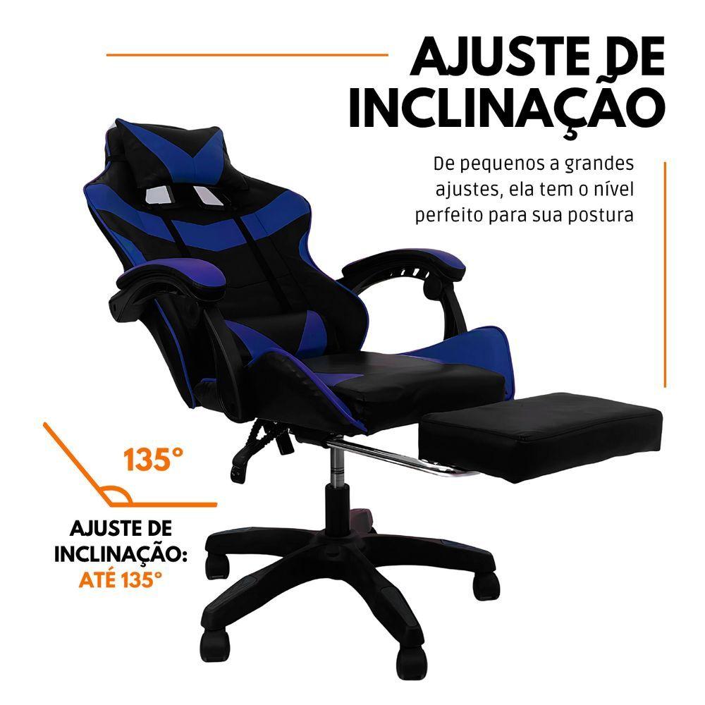 Kit 2 Cadeiras Gamer Stillus Ergonômica Com Apoio Para Os Pés - Azul