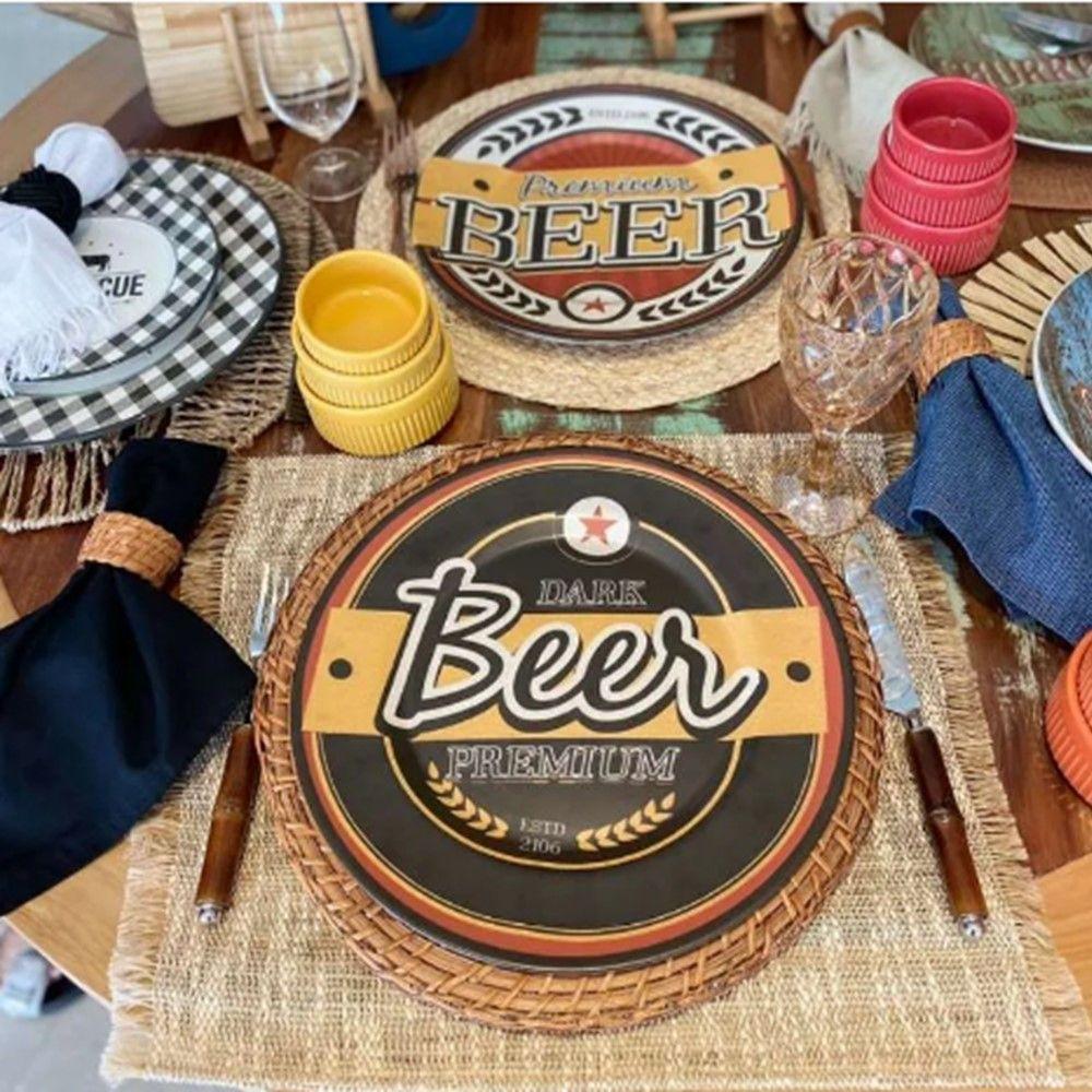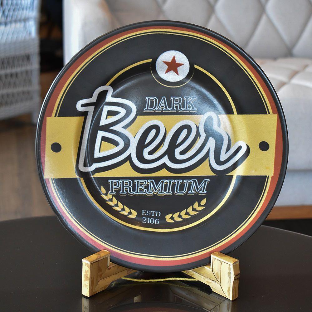 Prato Sobremesa Cerâmica Alleanza Cerveja Happy Hour Beer Preto 2ª Linha