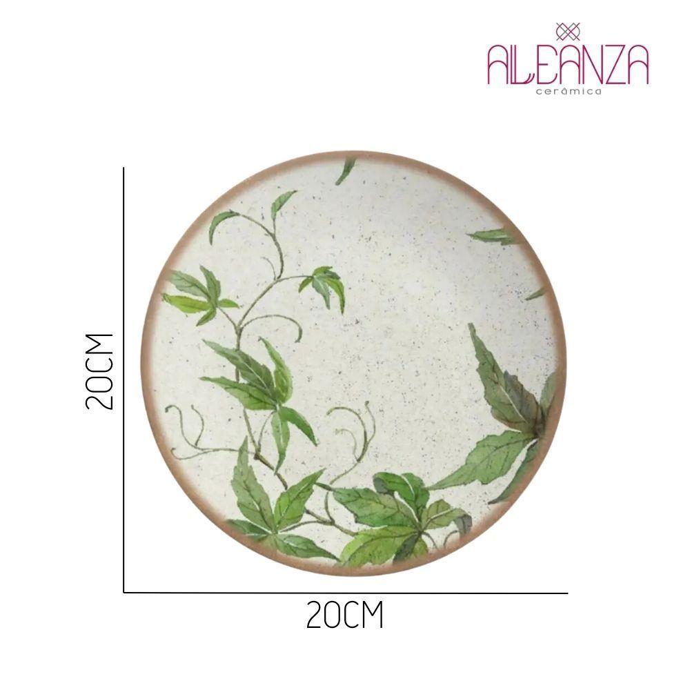Prato Sobremesa De Cerâmica Off White Coup Tropical Leaves Alleanza 20cm