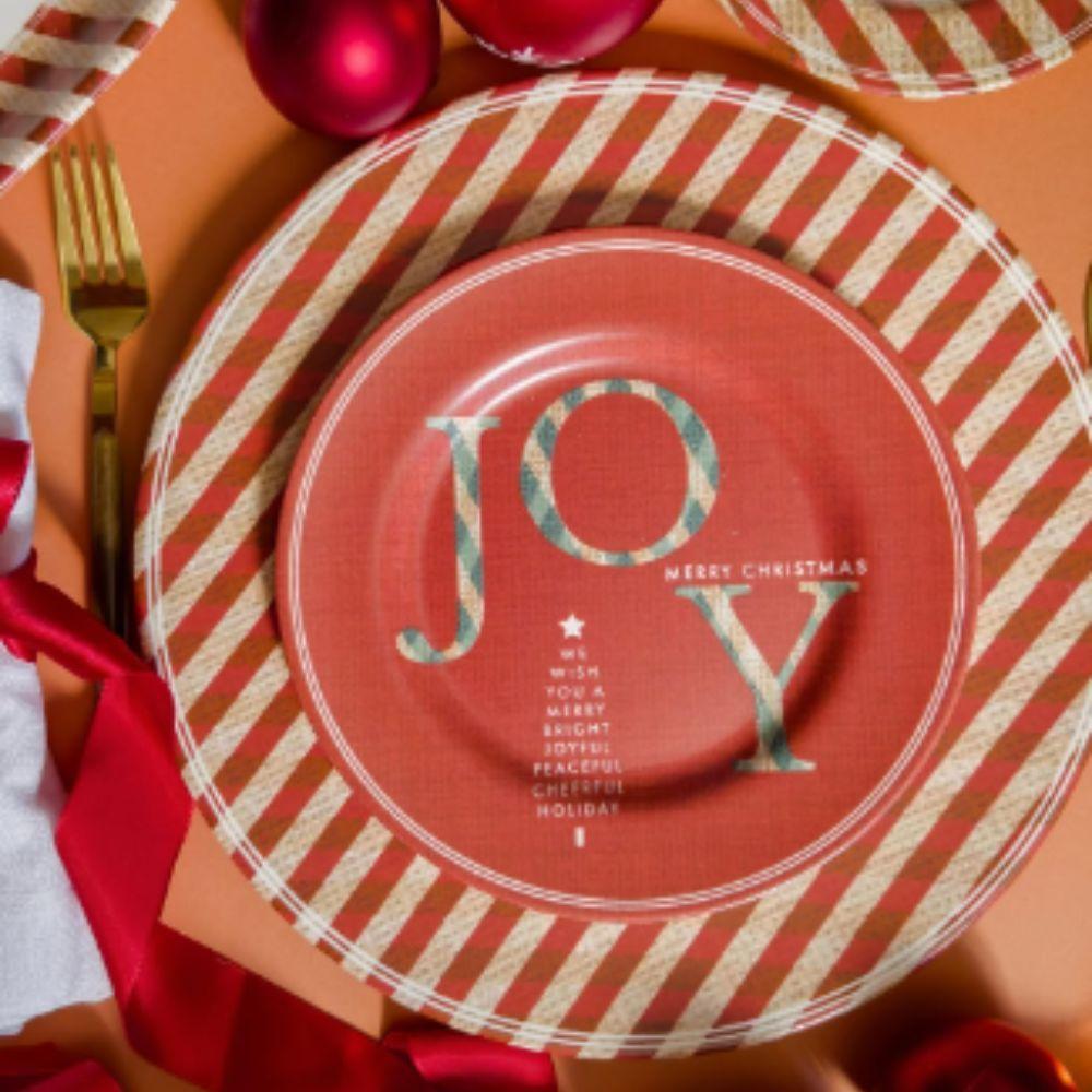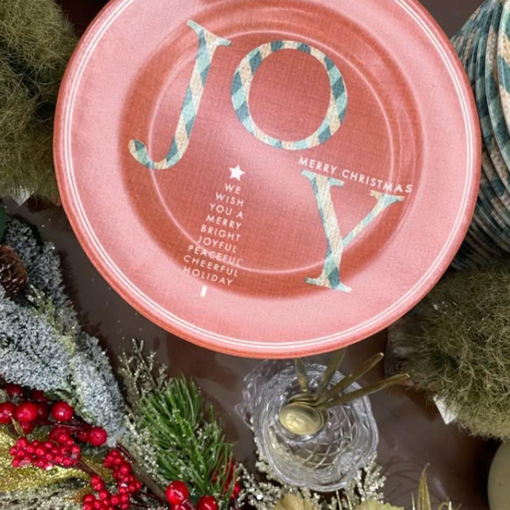 Jogo 4 Pratos Sobremesa Natalino Joy Vermelho Cerâmica Alleanza 20cm