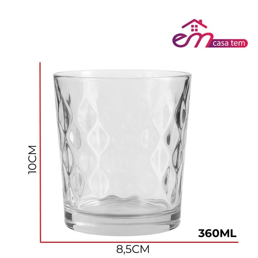 Jogo 10 Copo De Vidro Transparente Para Whisky Diamond 360ml Em Casa Tem