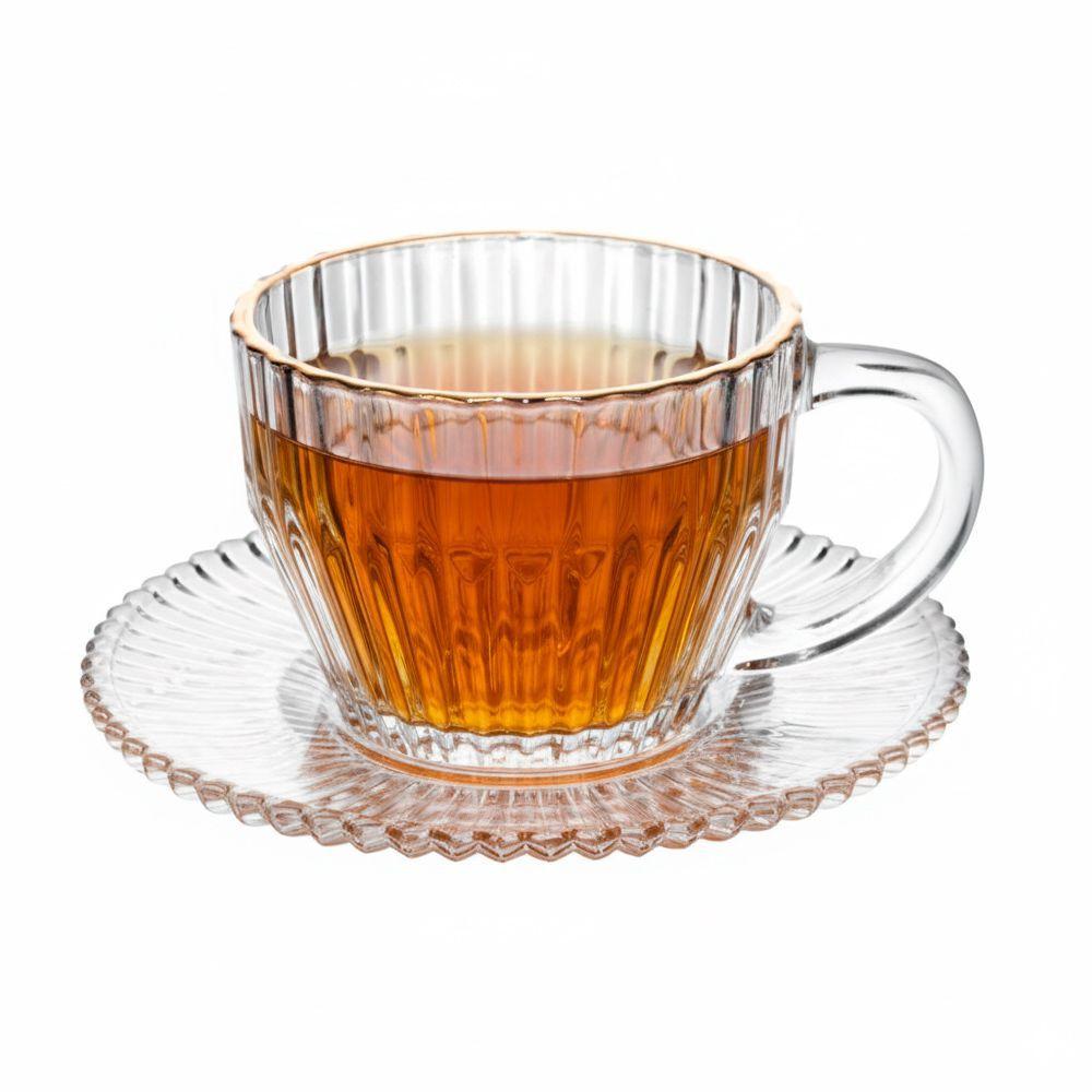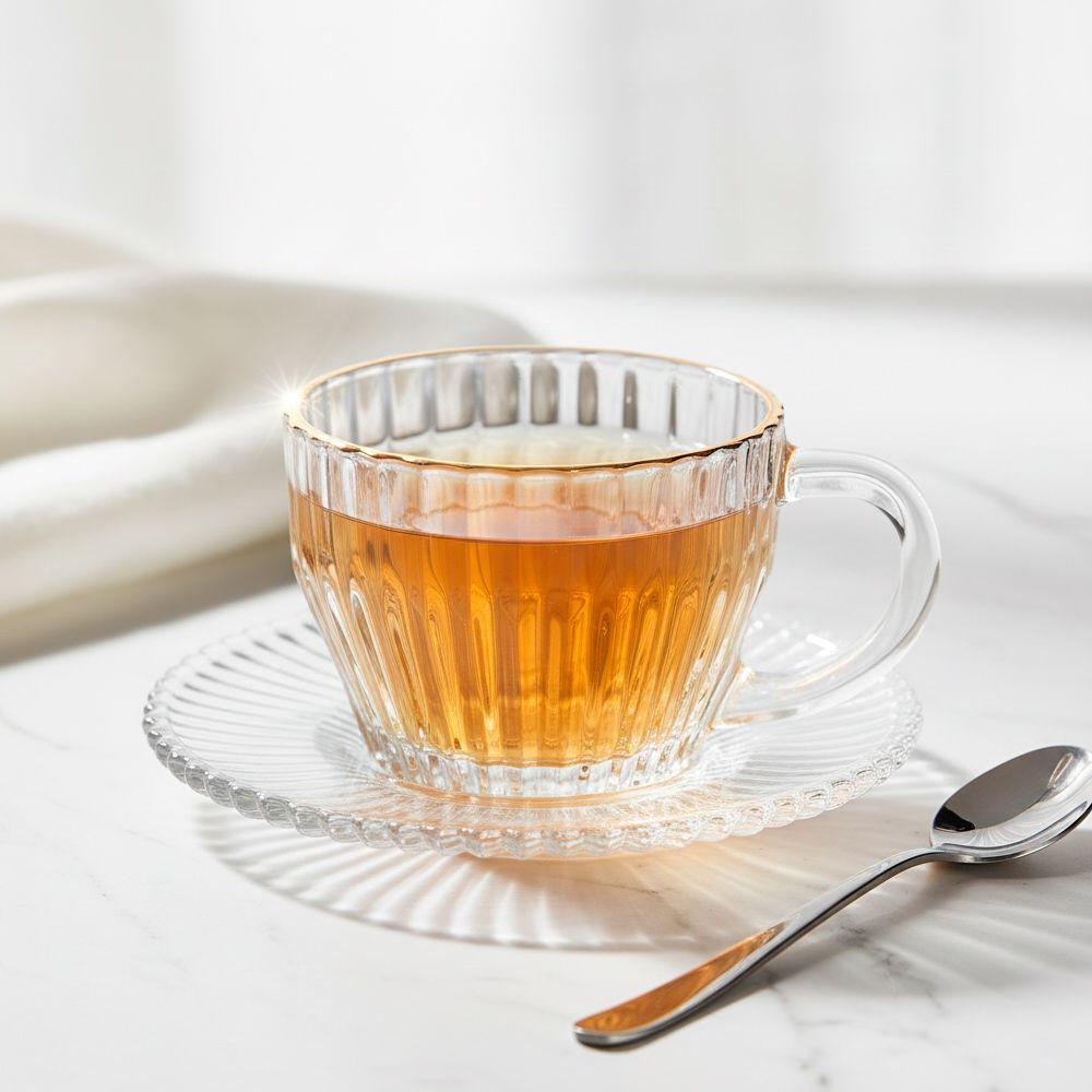 Jogo 4 Xícara De Chá Cristal Transparente Com Fio De Ouro Império 220ml Wolff
