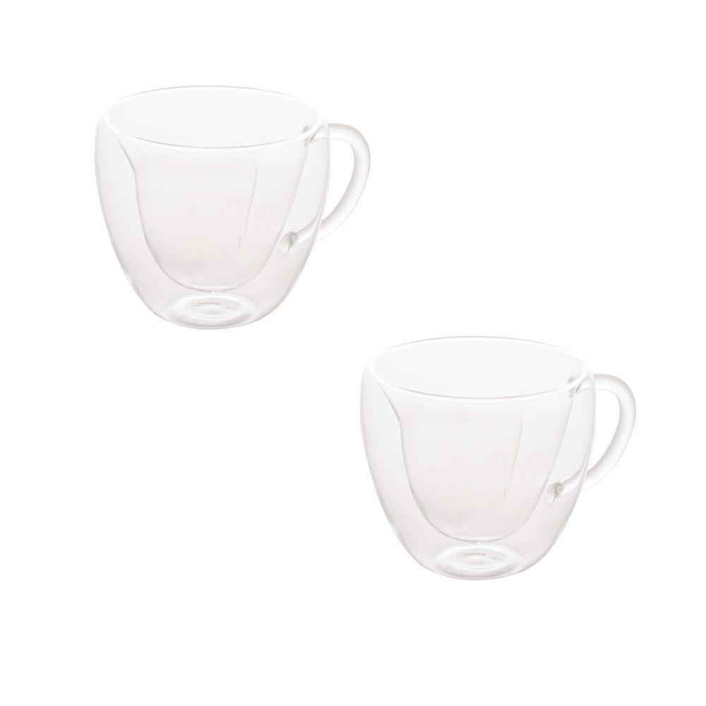 Jogo 2 Xícara De Chá Ou Café 230ml Vidro Com Parede Dupla Lyor