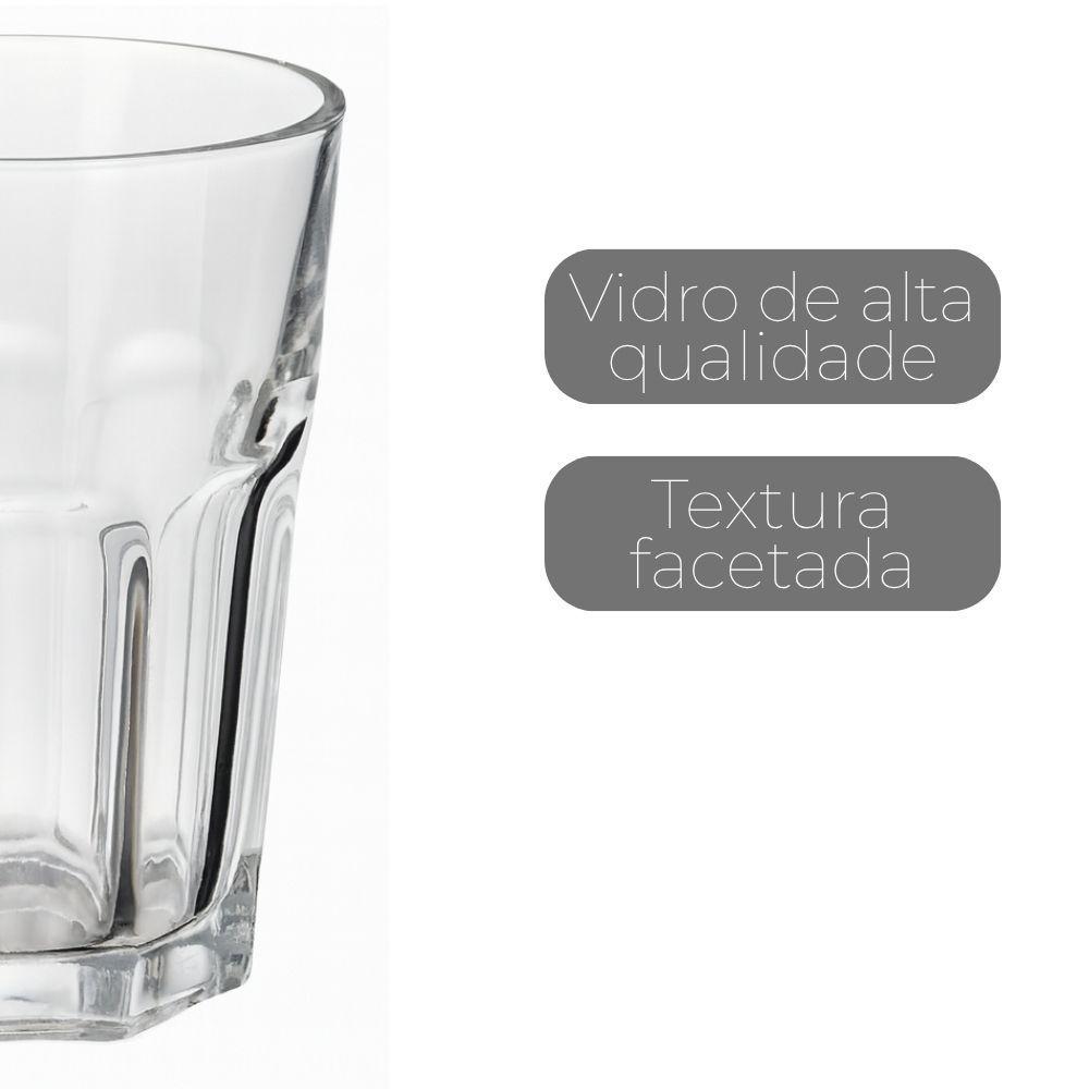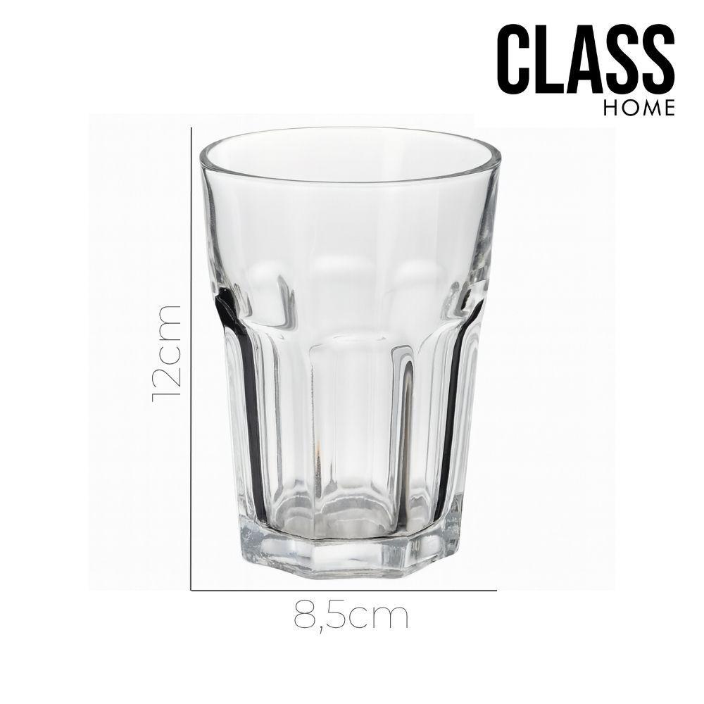 Copo De Vidro Facetado Transparente água Suco 400ml Class Home