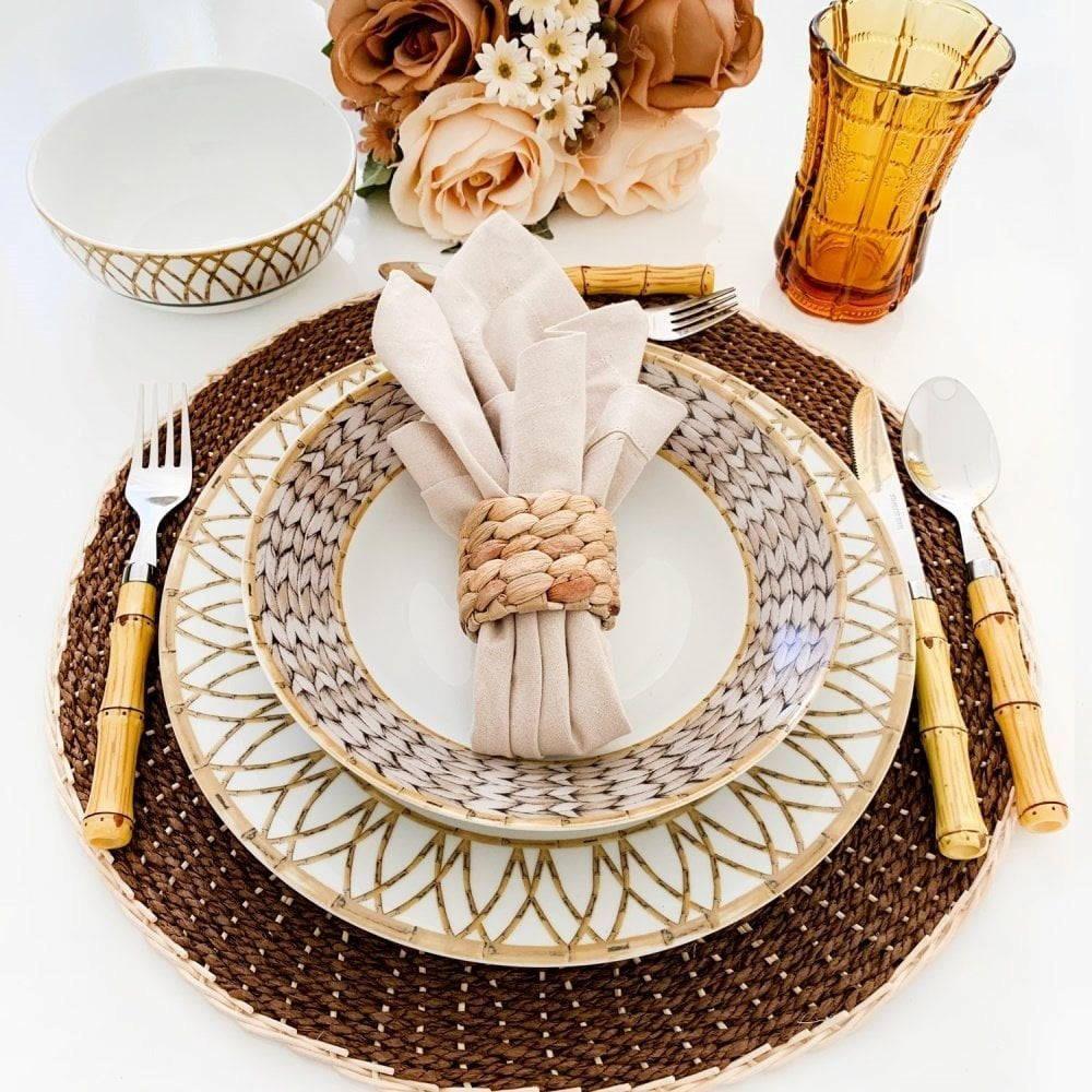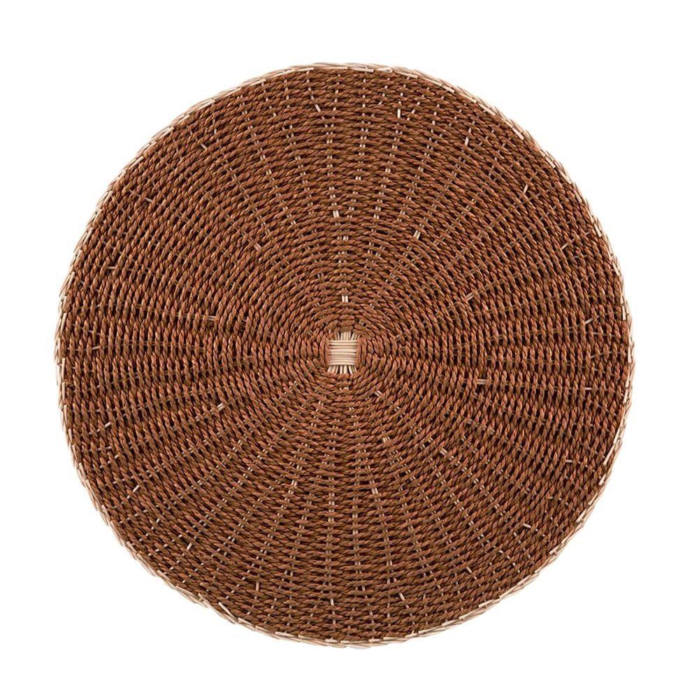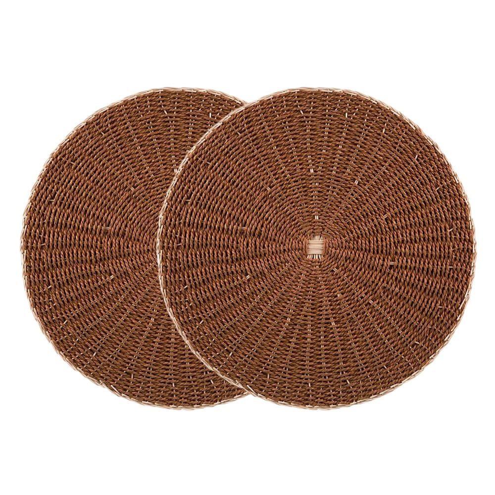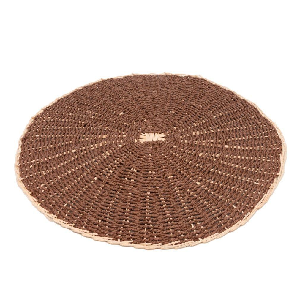 2 Lugar Americano Sousplat Redondo De Rattan Marrom Wolff 38cm