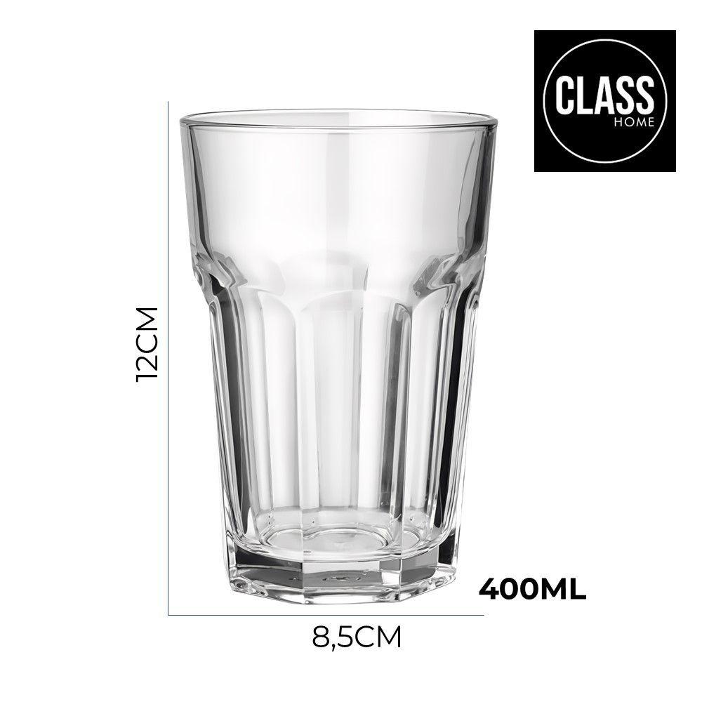 Jogo 4 Copo De Vidro Facetado Transparente água Suco 400ml Class Home