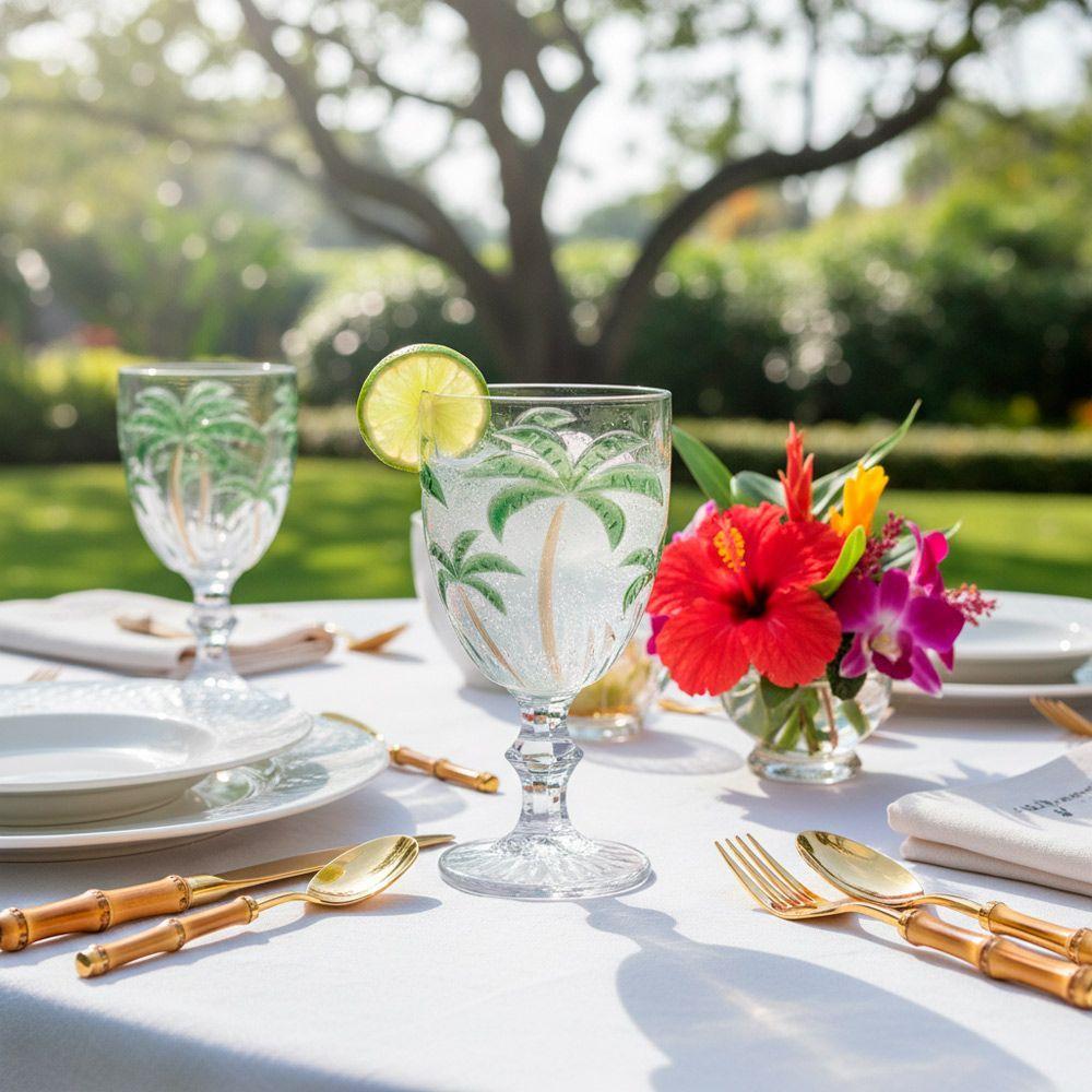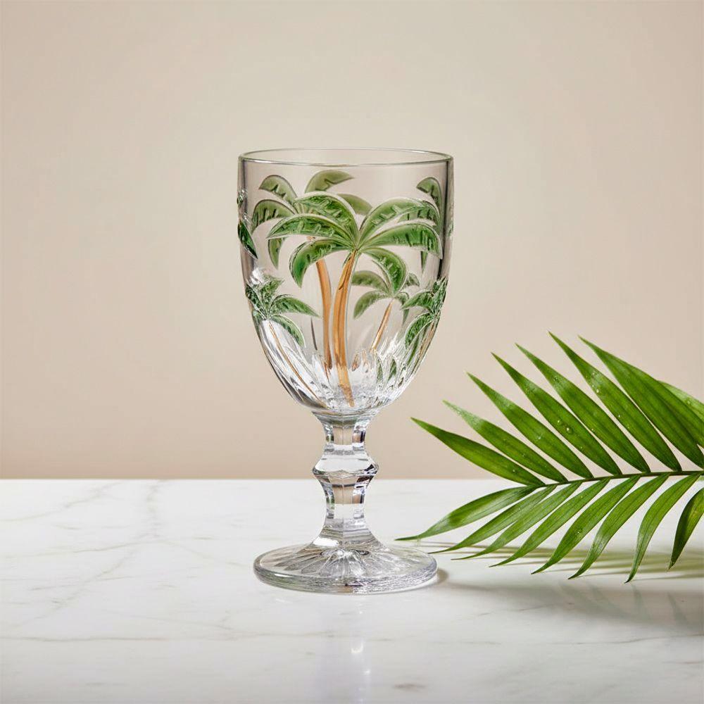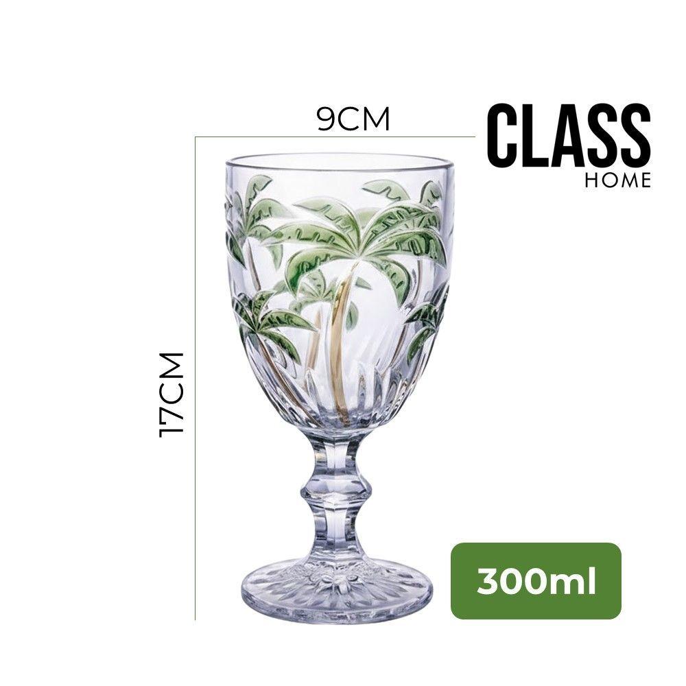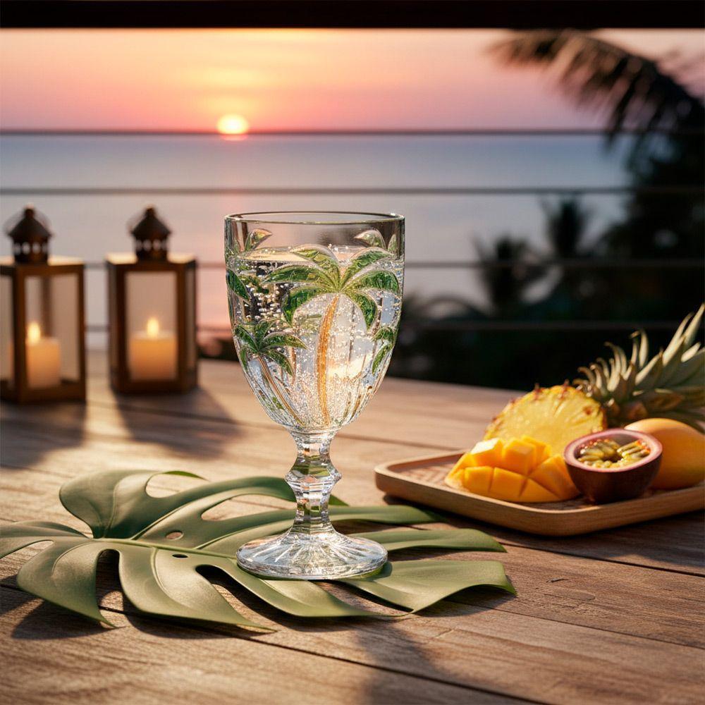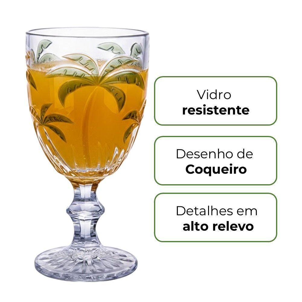 Jogo 12 Taça De Coqueiro Palm Tree Vidro Transparente Com Desenho Palmeira Class Home 300ml