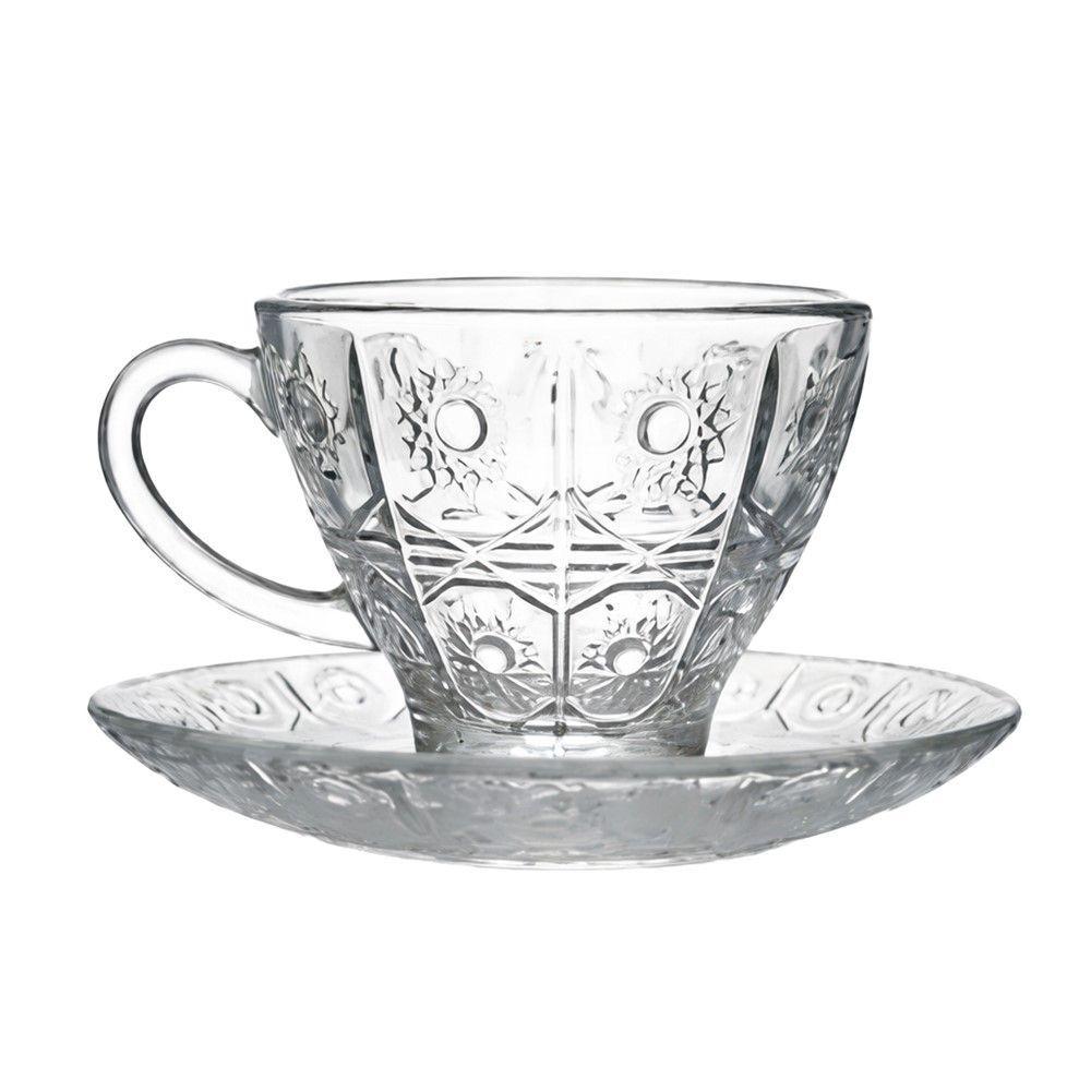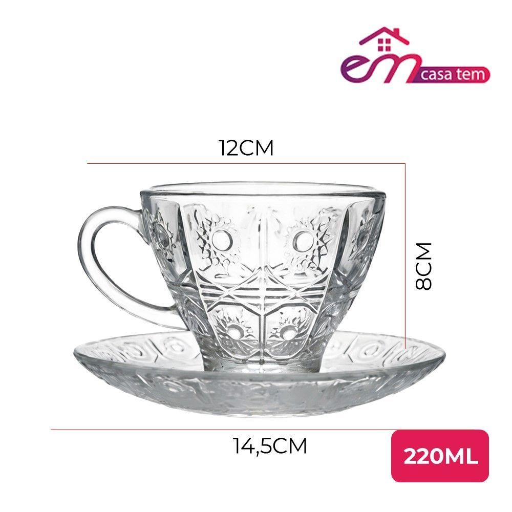 Jogo 12 Xícara De Chá Vidro Transparente Com Pires Bohemia Café Relevo 220ml Em Casa Tem