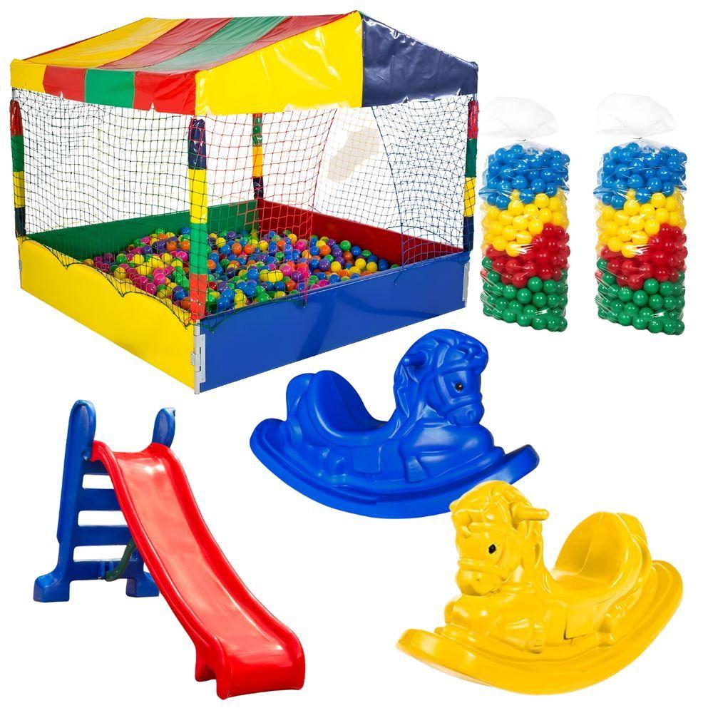 Piscina De Bolinhas 1,50m Quadrada Com 1000 Bolinhas Escorregador Medio E 2 Gangorras 1 Lugar