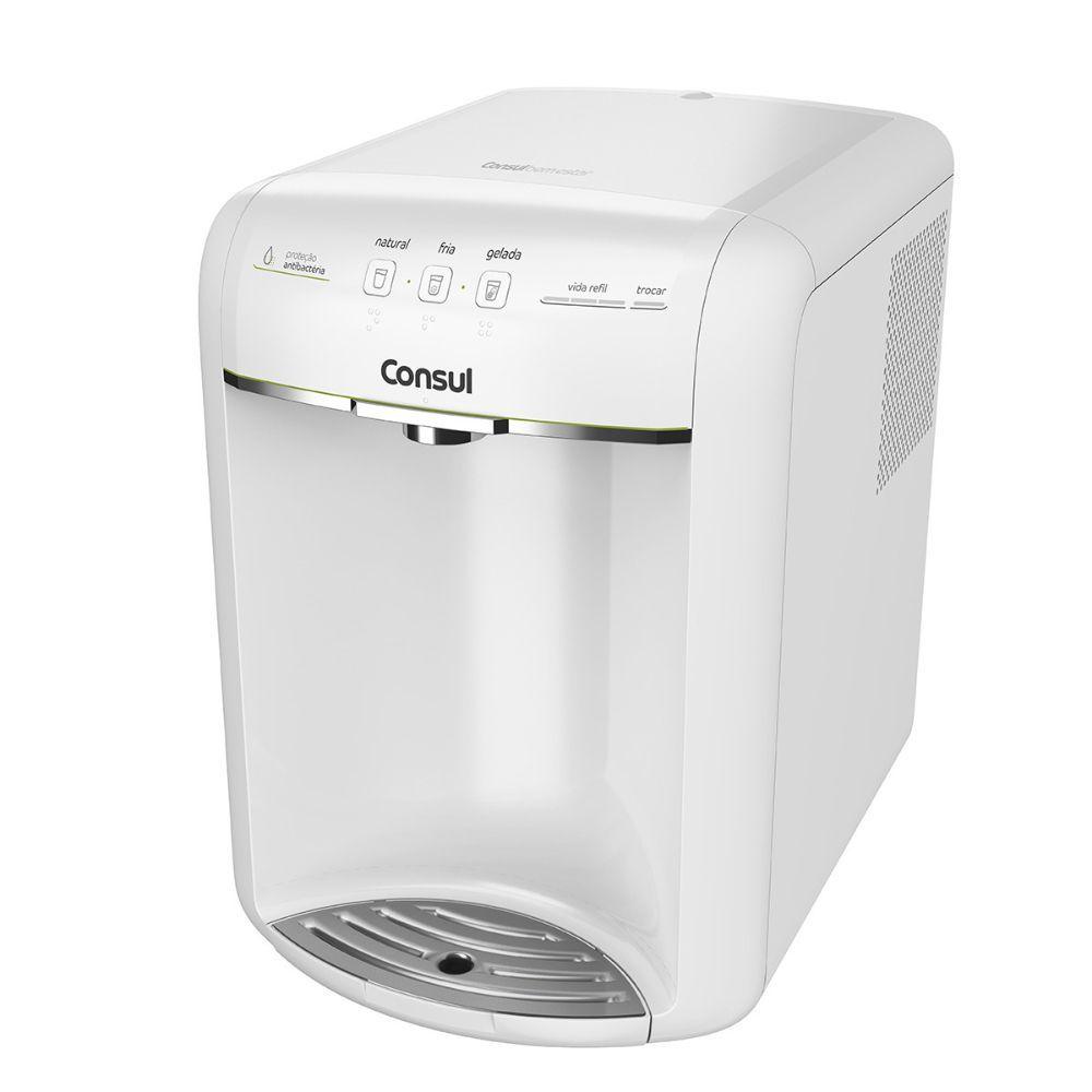 Purificador De Água Consul De Alta Capacidade De Refrigeração CPB36AB Branco 110VPurificador de Água Consul de Alta Capacidade de Refrigeração CPB36AB Branco 127VCom sistema de alta capacidade de refrigeração e um painel funcional, o Purificador Consul permite a seleção entre 3 níveis de temperatura – natural, fria ou gelada – além de possuir indicador gradual de vida do refil, que avisa a hora certa de trocá-lo.Diferenciais Consul:Alta Capacidade de RefrigeraçãoEquipado com sistema de compressor, gela mais água em menos tempo, garantindo praticidade para o dia a dia.3 Níveis de TemperaturaEscolha entre água natural, fria ou gelada, de forma simples e rápida pelo painel funcional.Indicador de Vida Útil do RefilDisplay gradual que mostra o momento certo da troca do refil, garantindo sempre água pura e ideal para consumo.Proteção AntibactériasFiltro com eficiência bacteriológica, oferecendo mais saúde para toda a família.Refil Troca FácilBasta girar e substituir o refil, sem complicações e sem necessidade de técnico.Especificações TécnicasCor: BrancoVoltagem: 127VRefrigeração: Água natural e geladaVazão: 40 – 60 L/hRetenção de partículas: Classe APlugue e tomada: 10 AProdutos compatíveis: W11198953; W11199342; W10301562; CJ_W11199342_2; CJ_W11199342_3; CJ_W10301562_2; CJ_W10301562_3Filtro compatível: W11198953; W11199342; W10301562; CJ_W11199342_2; CJ_W11199342_3; CJ_W10301562_2; CJ_W10301562_3Temperatura de operação: 10°C a 32°CMais informações: Possui sistema de alta capacidade de refrigeração, 3 níveis de temperatura (natural, fria e gelada) e indicador gradual da vida do refil.Dimensões e Peso AproximadosAltura: 32,8 cmLargura: 24 cmProfundidade: 29,6 cmPeso: 3,9 kgGarantia12 meses (3 meses de garantia legal + 9 meses contra defeitos de fabricação).ObservaçõesCertifique-se da montagem correta de todas as partes antes do uso.Verifique o prazo de garantia no Manual de Instruções.Em caso de problema, procure uma Assistência Técnica Autorizada.Conferir o produto no ato da entrega. Em caso de anormalidade, recuse o recebimento.Todas as informações divulgadas são de responsabilidade do fabricante, podendo sofrer alterações sem aviso prévio.Imagem meramente ilustrativa.