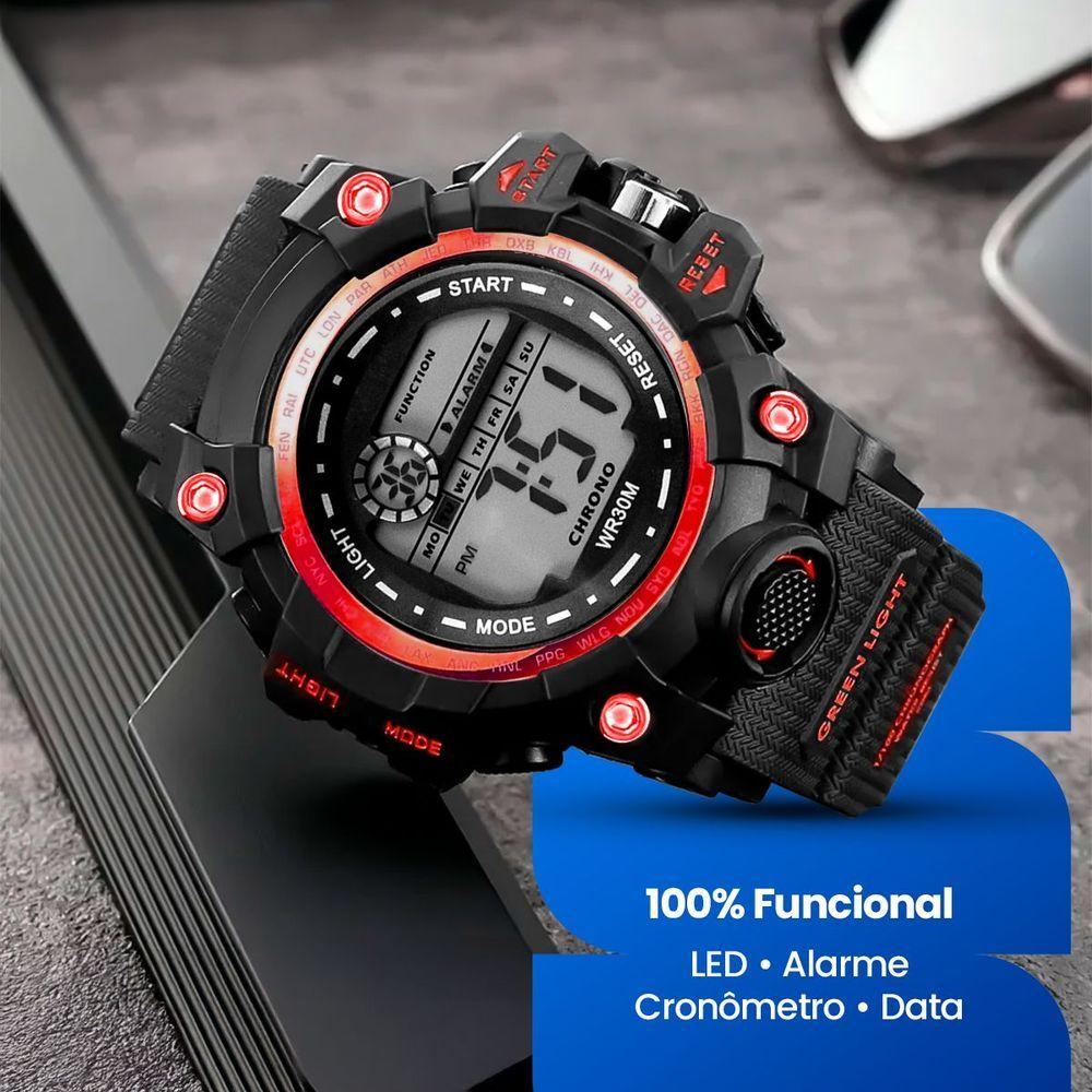 Relogio Masculino Preto Digital Prova Dagua Silicone + Caixa Original Robusto Esportivo Vermelho