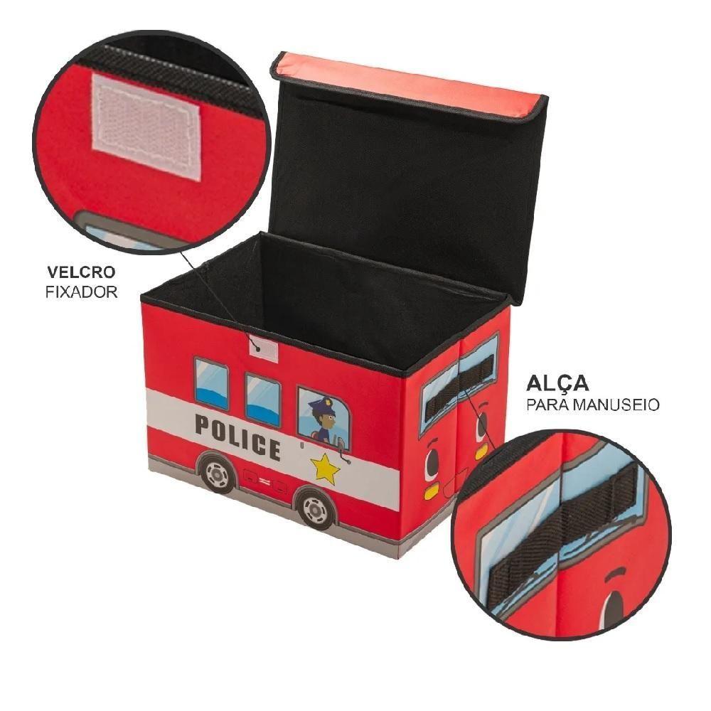 Bau Organizador Infantil Multiuso Caixa De Brinquedos Policia Puff Porta Treco Roupa Sapato Ursinho Menino Menina Vermel