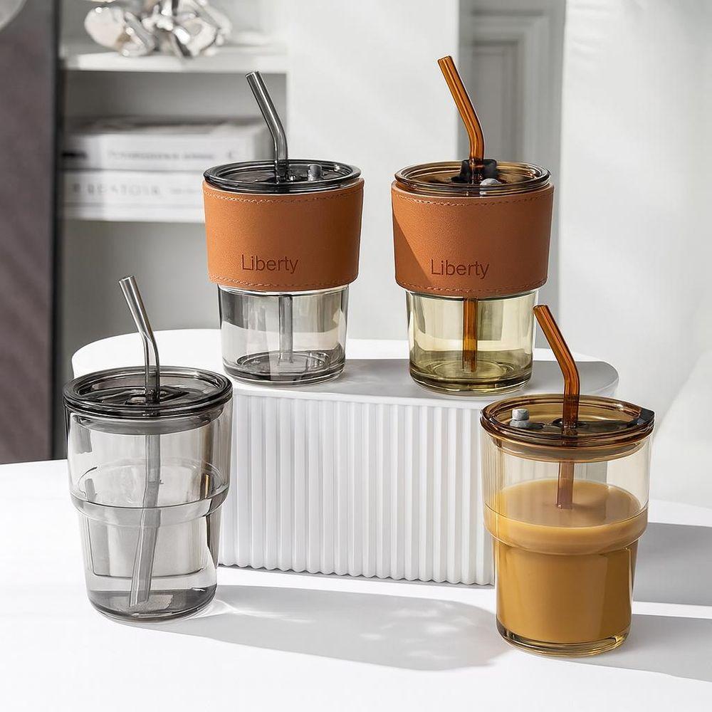 Copo Vidro Com Canudo Tampa E Vedação 450ml Branco