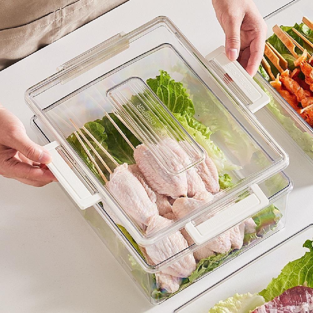 Kit 3 Potes Hermeticos Organizador Geladeira Fresh Box Com Cesta Escorredor Removivel Acrilico